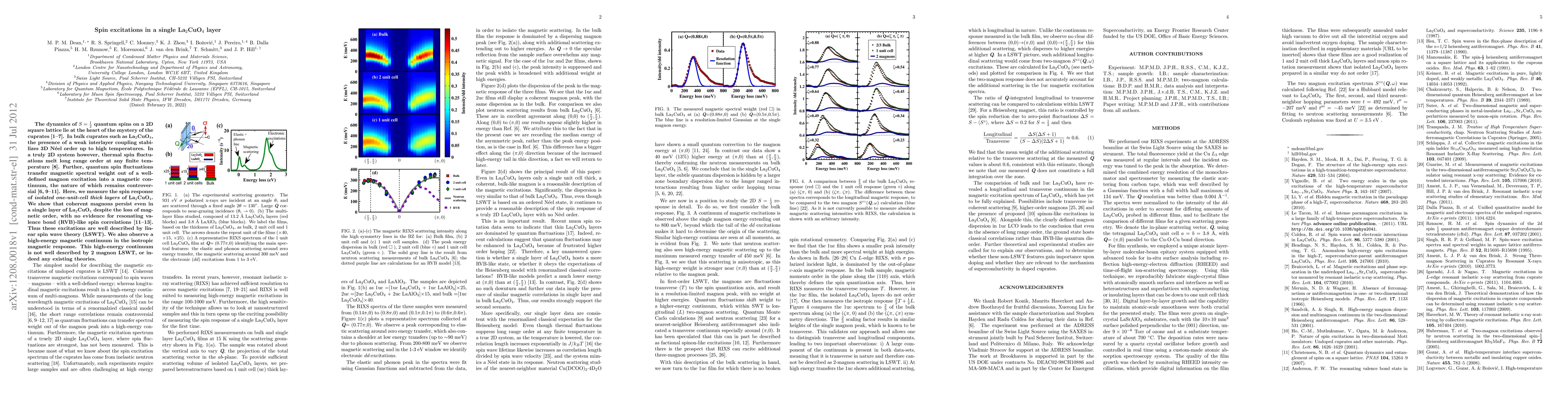 The dynamics of S=1/2 quantum spins on a 2D square lattice lie at the heart of the mystery of the cuprates \cite{Hayden2004,Vignolle2007,Li2010,LeTacon2011,Coldea2001,Headings2010,Braicovich2010}. In bulk cuprates such as \LCO{}, the presence of a weak interlayer coupling stabilizes 3D N\'{e}el order up to high temperatures. In a truly 2D system however, thermal spin fluctuations melt long range order at any finite temperature \cite{Mermin1966}. Further, quantum spin fluctuations transfer magnetic spectral weight out of a well-defined magnon excitation into a magnetic continuum, the nature of which remains controversial \cite{Sandvik2001,Ho2001,Christensen2007,Headings2010}. Here, we measure the spin response of \emph{isolated one-unit-cell thick layers} of \LCO{}. We show that coherent magnons persist even in a single layer of \LCO{} despite the loss of magnetic order, with no evidence for resonating valence bond (RVB)-like spin correlations \cite{Anderson1987,Hsu1990,Christensen2007}. Thus these excitations are well described by linear spin wave theory (LSWT). We also observe a high-energy magnetic continuum in the isotropic magnetic response. This high-energy continuum is not well described by 2 magnon LSWT, or indeed any existing theories.
