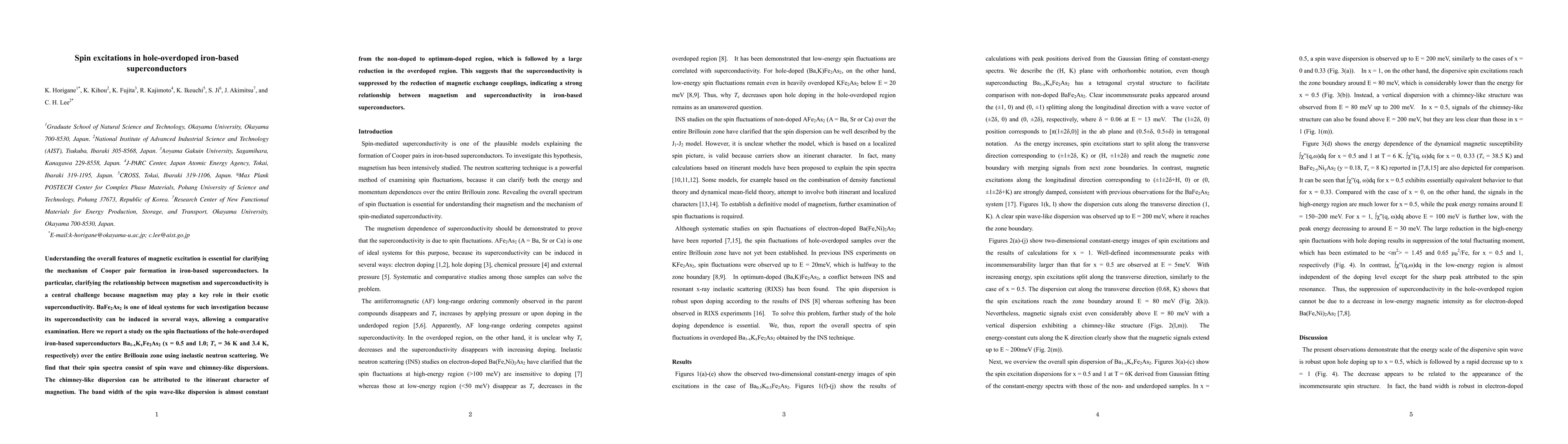 The study of spin excitations in hole-overdoped iron-based superconductors Ba1-xKxFe2As2 reveals spin wave and chimney-like dispersions, suggesting an itinerant magnetic character. The reduction in magnetic exchange couplings in the overdoped region indicates a strong relationship between magnetism and suppressed superconductivity.