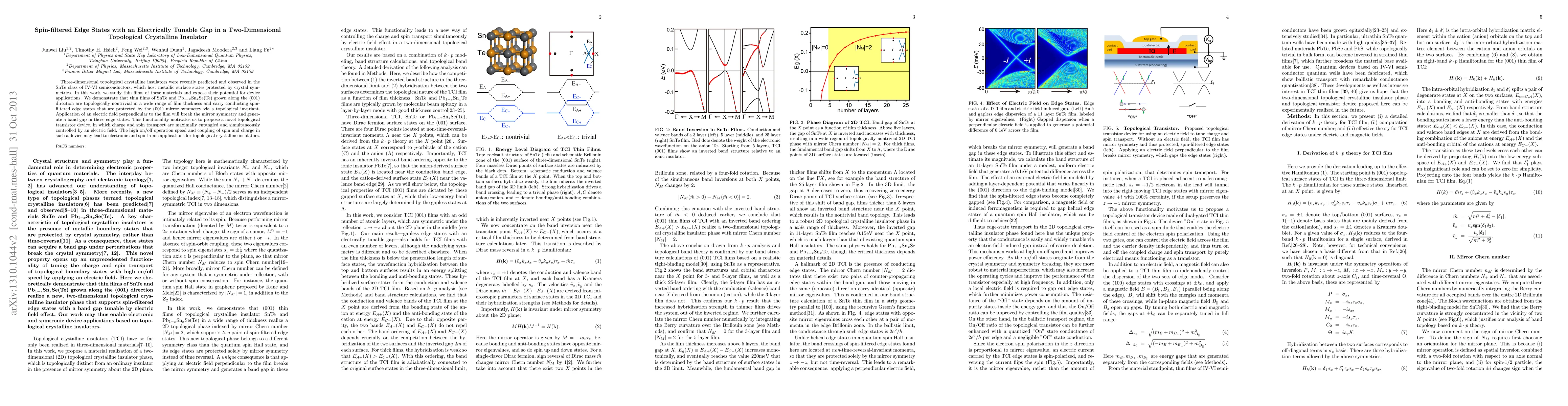 Three-dimensional topological crystalline insulators were recently predicted and observed in the SnTe class of IV-VI semiconductors, which host metallic surface states protected by crystal symmetries. In this work, we study thin films of these materials and expose their potential for device applications. We demonstrate that thin films of SnTe and Pb(1-x)Sn(x)Se(Te) grown along the (001) direction are topologically nontrivial in a wide range of film thickness and carry conducting spin-filtered edge states that are protected by the (001) mirror symmetry via a topological invariant. Application of an electric field perpendicular to the film will break the mirror symmetry and generate a band gap in these edge states. This functionality motivates us to propose a novel topological transistor device, in which charge and spin transport are maximally entangled and simultaneously controlled by an electric field. The high on/off operation speed and coupling of spin and charge in such a device may lead to electronic and spintronic applications for topological crystalline insulators.