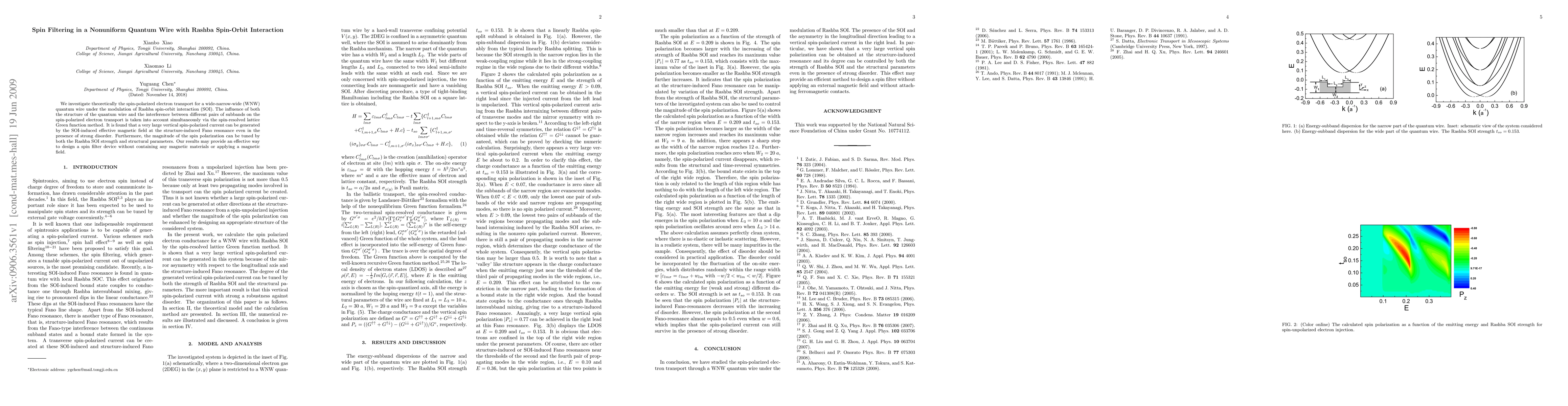 This paper theoretically explores spin-polarized electron transport in a nonuniform quantum wire under Rashba spin-orbit interaction, revealing significant spin-polarized current generation due to Fano resonance and demonstrating tunable spin polarization via structural and SOI parameters, potentially enabling spin filter design without magnetic materials.