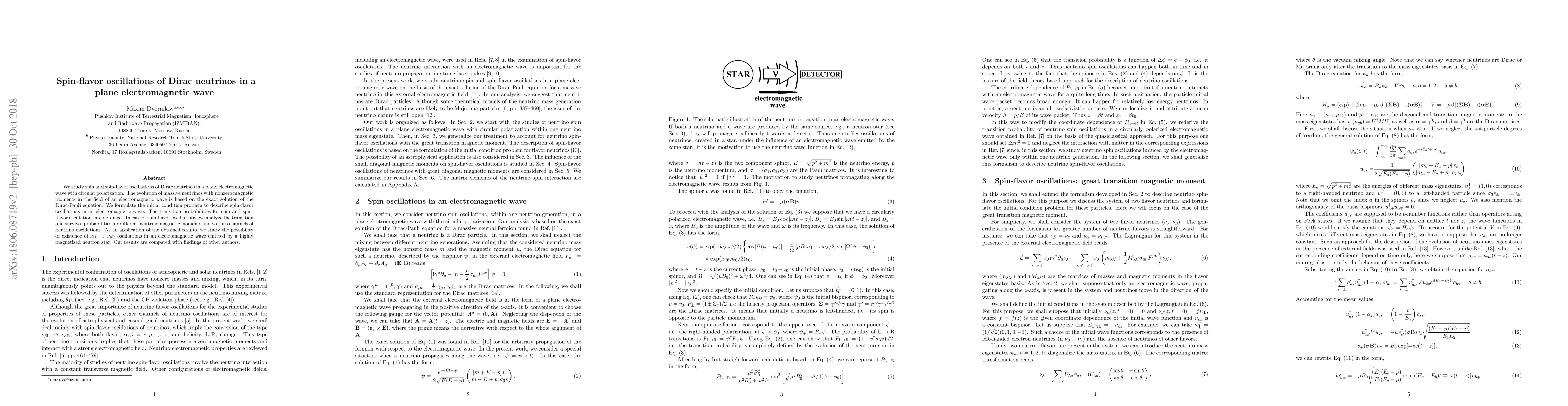 This paper investigates spin and spin-flavor oscillations of Dirac neutrinos in a plane electromagnetic wave with circular polarization, deriving transition probabilities based on the exact solution of the Dirac-Pauli equation. It also explores the potential for $\nu_{e\mathrm{L}}\to\nu_{\mu\mathrm{R}}$ oscillations in electromagnetic waves emitted by magnetized neutron stars.