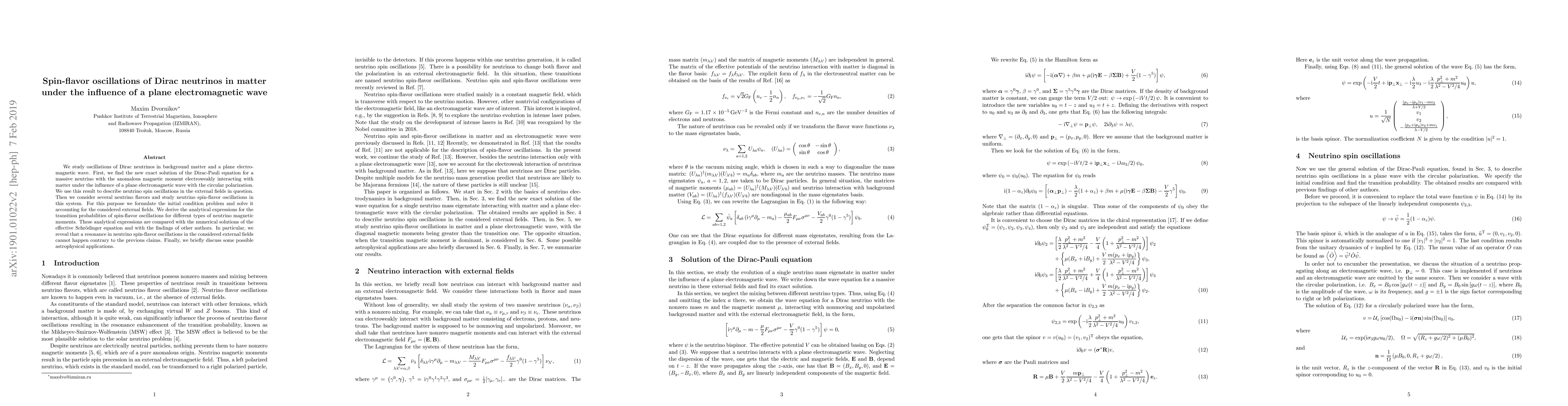 The research utilizes the Dirac-Pauli equation to study oscillations of massive Dirac neutrinos with anomalous magnetic moments in background matter and a plane electromagnetic wave, deriving new exact solutions and analytical expressions for transition probabilities.