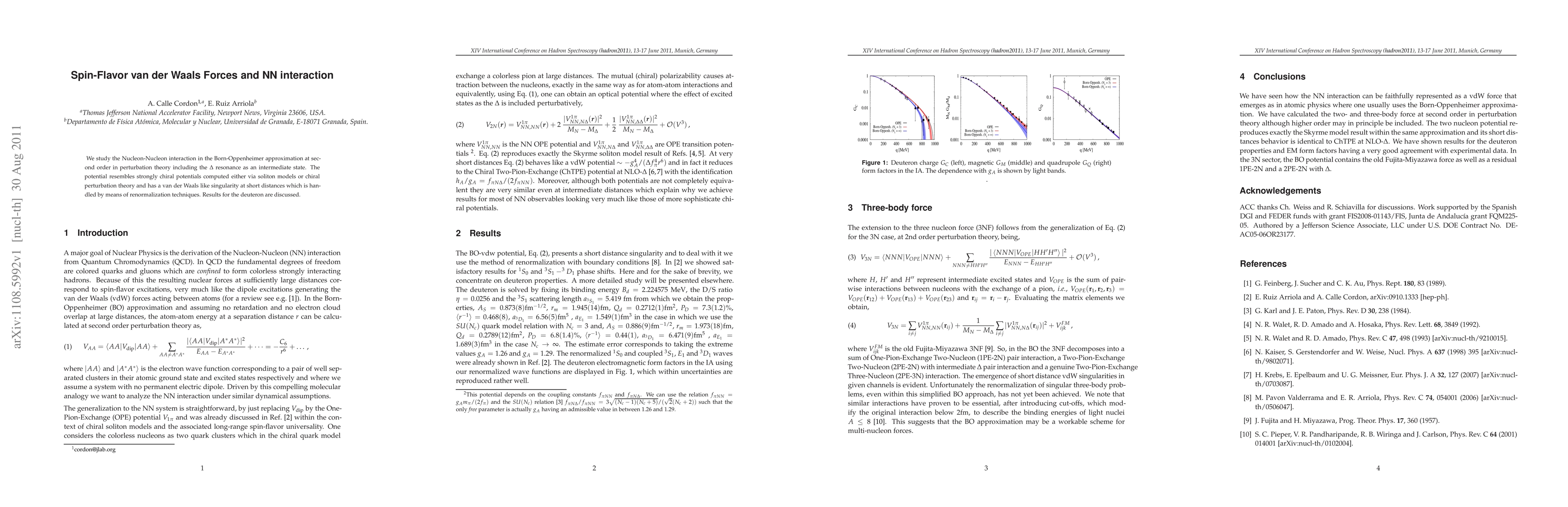 We study the Nucleon-Nucleon interaction in the Born-Oppenheimer approximation at second order in perturbation theory including the \Delta\ resonance as an intermediate state. The potential resembles strongly chiral potentials computed either via soliton models or chiral perturbation theory and has a van der Waals like singularity at short distances which is handled by means of renormalization techniques. Results for the deuteron are discussed.
