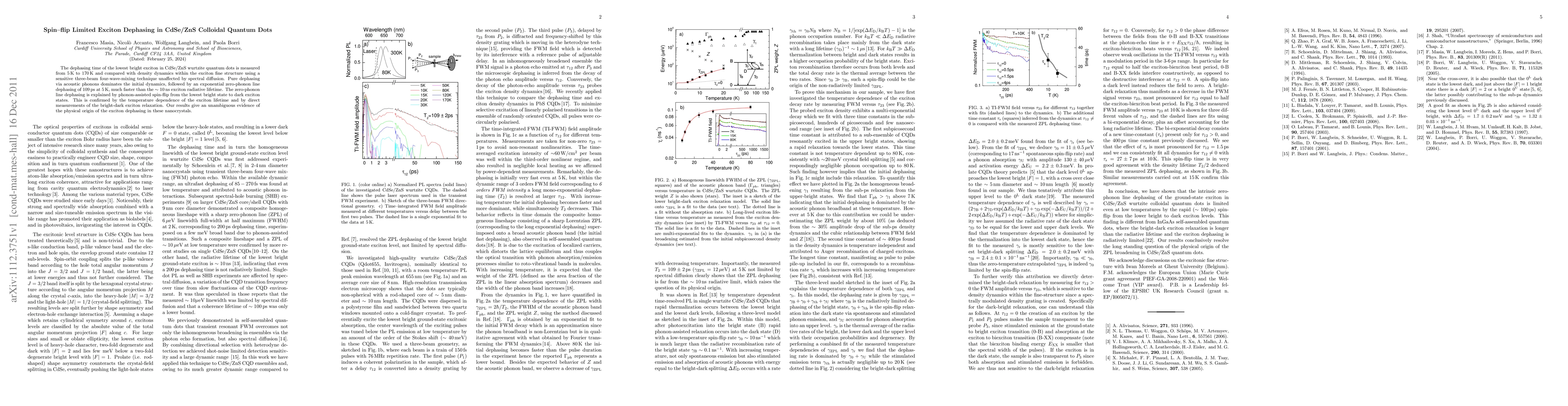 This study measures the dephasing time of excitons in CdSe/ZnS quantum dots, revealing that phonon-assisted spin-flip processes dominate the initial dephasing, leading to a zero-phonon line dephasing time of 109 ps at 5 K, significantly faster than the exciton's radiative lifetime. The findings provide clear evidence of the spin-flip limited exciton dephasing mechanism in these materials.