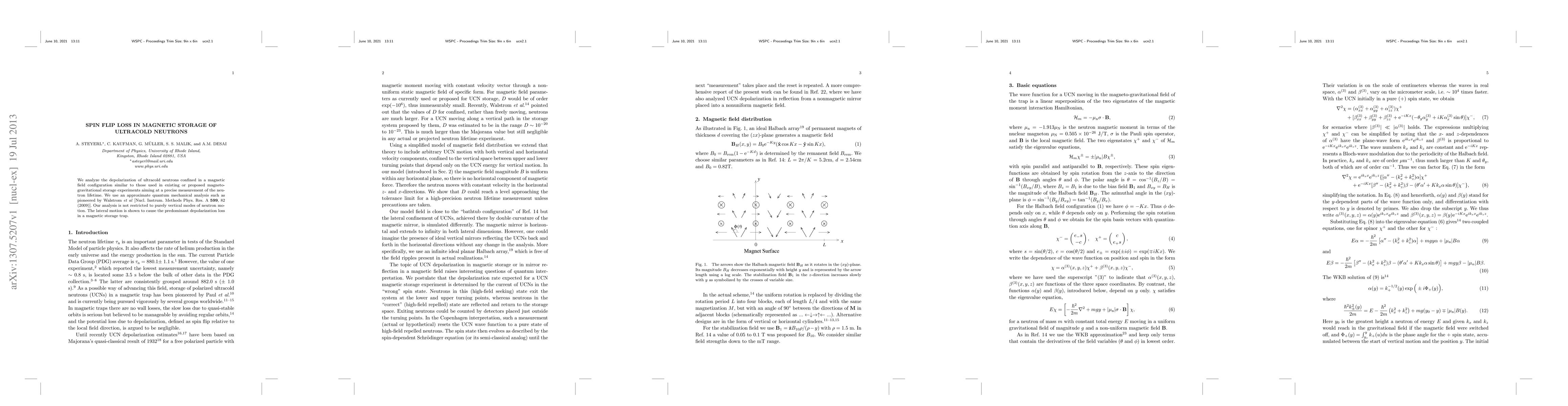 We analyze the depolarization of ultracold neutrons confined in a magnetic field configuration similar to those used in existing or proposed magneto-gravitational storage experiments aiming at a precise measurement of the neutron lifetime. We use an approximate quantum mechanical analysis such as pioneered by Walstrom \emph{et al} [Nucl. Instrum. Methods Phys. Res. A 599, 82 (2009)]. Our analysis is not restricted to purely vertical modes of neutron motion. The lateral motion is shown to cause the predominant depolarization loss in a magnetic storage trap.