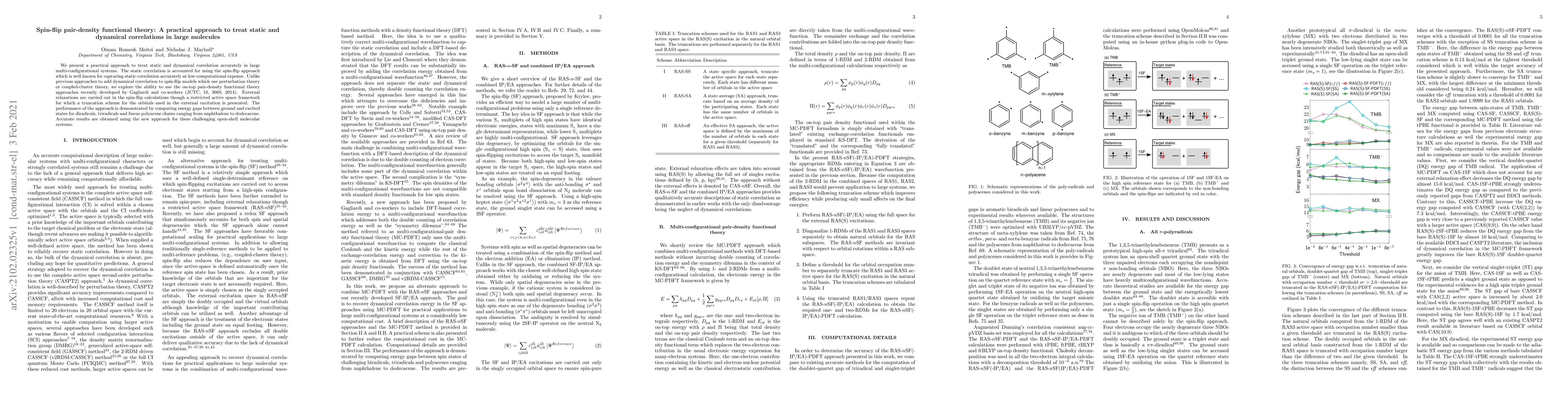 This paper introduces a practical spin-flip pair-density functional theory method to accurately treat static and dynamical correlations in large multi-configurational systems. It combines spin-flip for static correlation and on-top pair-density functional theory for dynamical correlation, demonstrating accurate energy gaps for diradicals, triradicals, and polyacene chains.