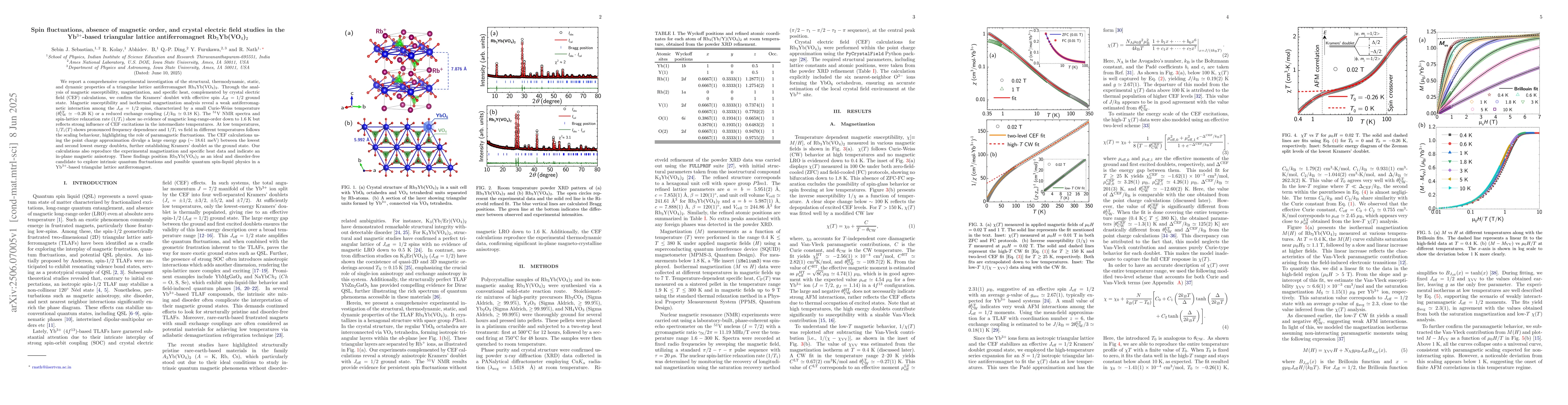 The study of Rb3Yb(VO4)2, a Yb3+-based triangular lattice antiferromagnet, reveals a Kramers' doublet ground state with Jeff=1/2 through magnetic susceptibility, magnetization, specific heat, and crystal electric field (CEF) calculations. Weak antiferromagnetic interactions are identified with a small Curie-Weiss temperature. NMR and spin-lattice relaxation data show no magnetic long-range order down to 1.6 K, emphasizing paramagnetic fluctuations. CEF calculations indicate a large energy gap and in-plane magnetic anisotropy, suggesting Rb3Yb(VO4)2 as a promising candidate to investigate quantum spin-liquid physics in Yb3+ triangular lattice antiferromagnets.