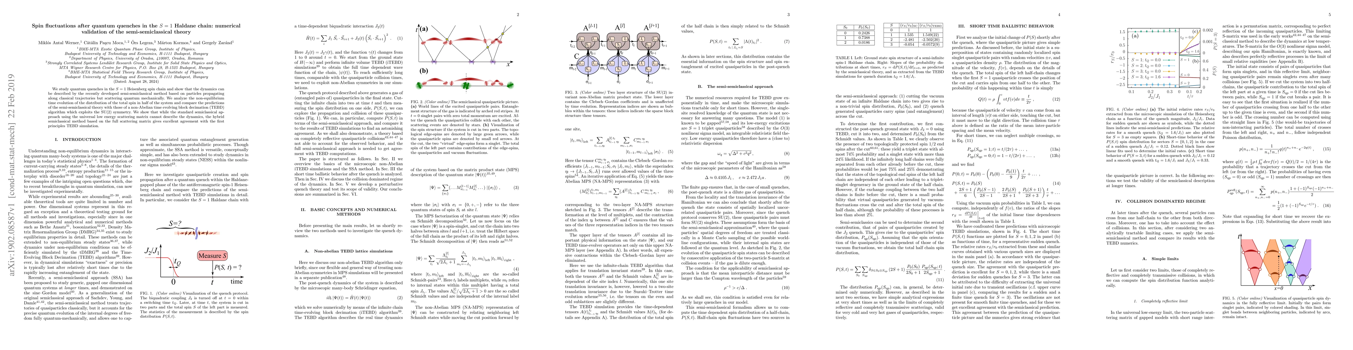 This paper investigates quantum quenches in the $S=1$ Heisenberg spin chain, demonstrating that the semi-semiclassical theory accurately describes the dynamics by combining classical trajectories with quantum scattering. The study finds that the hybrid semiclassical approach, using the full scattering matrix, aligns well with non-Abelian time-evolving block decimation simulations, unlike the standard semiclassical method.