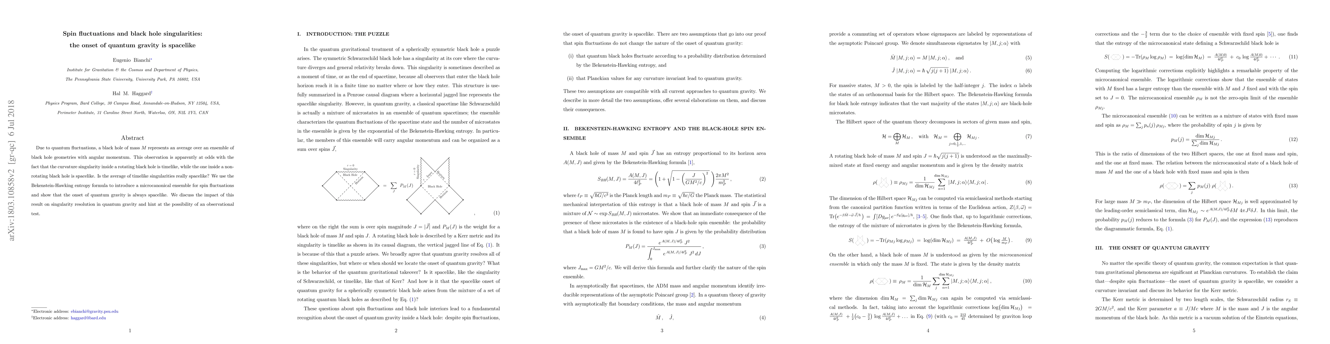 This paper explores the implications of quantum fluctuations on black hole singularities, demonstrating that despite apparent contradictions, the onset of quantum gravity effects is consistently spacelike. It uses the Bekenstein-Hawking entropy formula to model spin fluctuations and discusses its potential impact on singularity resolution and possible observational tests.