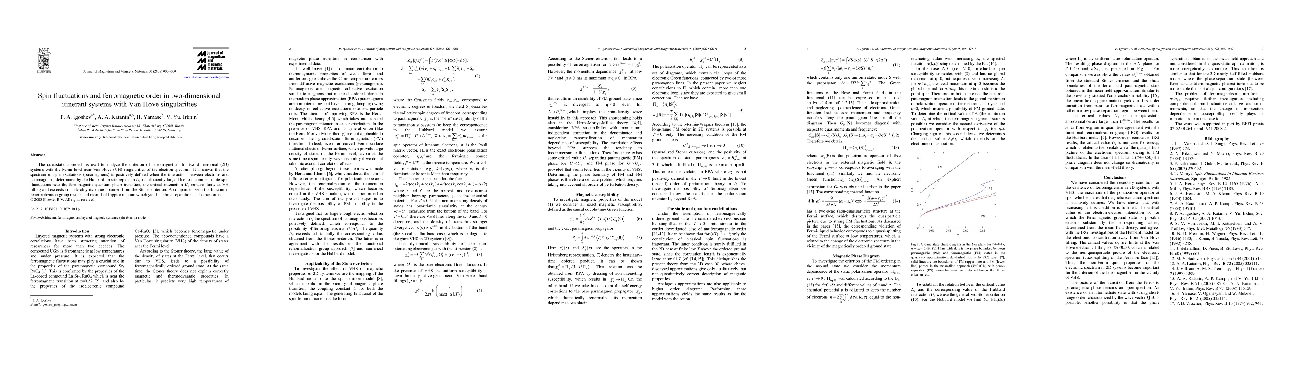 This paper investigates the criterion for ferromagnetism in 2D systems with Van Hove singularities, demonstrating that strong electron-paramagnon interactions, driven by large Hubbard repulsion, lead to a positively defined spin excitation spectrum. The critical interaction for ferromagnetism exceeds values predicted by the Stoner criterion, especially near VH fillings.