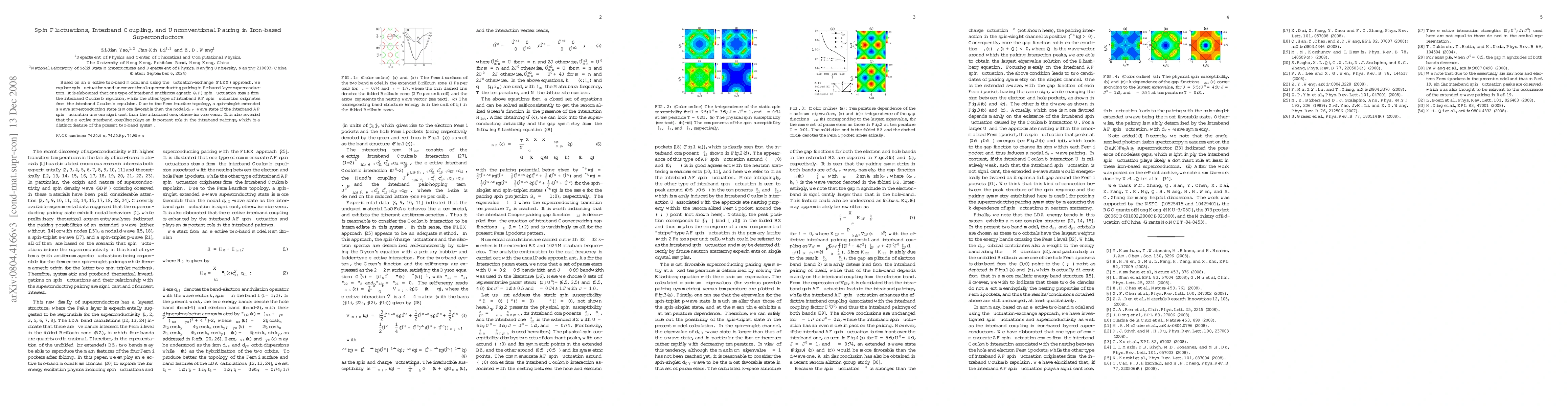 This paper investigates spin fluctuations and unconventional pairing in iron-based superconductors using a two-band model and FLEX approach. It finds that interband antiferromagnetic spin fluctuations, driven by interband Coulomb repulsion, favor a spin-singlet extended s-wave state, while intraband fluctuations favor a $d_{XY}$-wave state, with interband coupling significantly influencing intraband pairing.