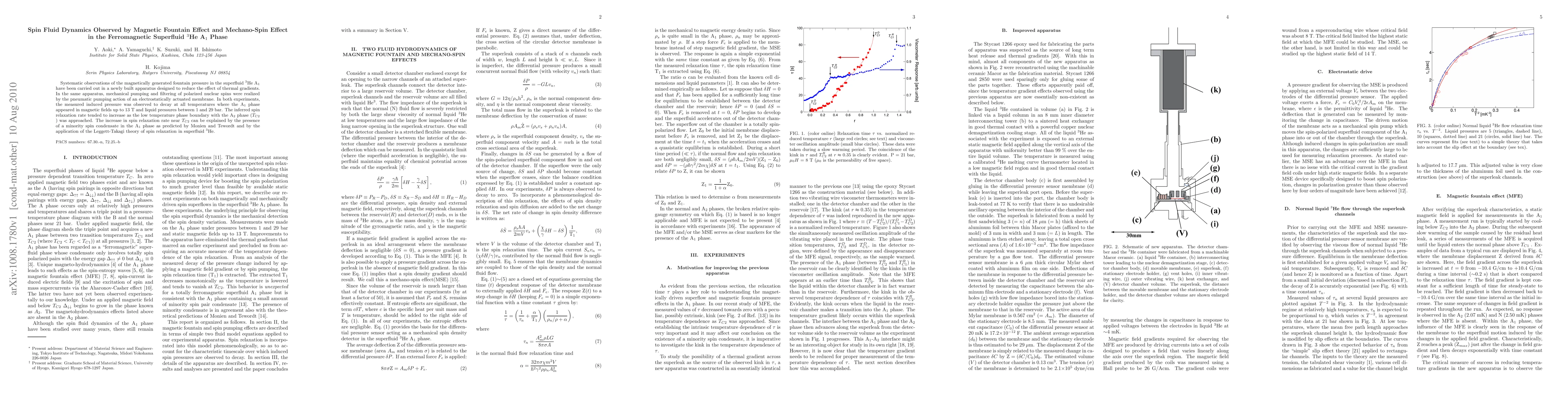 Systematic observations of the magnetically generated fountain pressure in the superfluid $^3$He A$_1$ have been carried out in a newly built apparatus designed to reduce the effect of thermal gradients. In the same apparatus, mechanical pumping and filtering of polarized nuclear spins were realized by the pneumatic pumping action of an electrostatically actuated membrane. In both experiments, the measured induced pressure was observed to decay at all temperatures where the A$_1$ phase appeared in magnetic fields up to 13 T and liquid pressures between 1 and 29 bar. The inferred spin relaxation rate tended to increase as the low temperature phase boundary with the A$_2$ phase (T$_{C2}$) was approached. The increase in spin relaxation rate near T$_{C2}$ can be explained by the presence of a minority spin condensate in the A$_1$ phase as predicted by Monien and Tewordt and by the application of the Leggett-Takagi theory of spin relaxation in superfluid $^3$He.