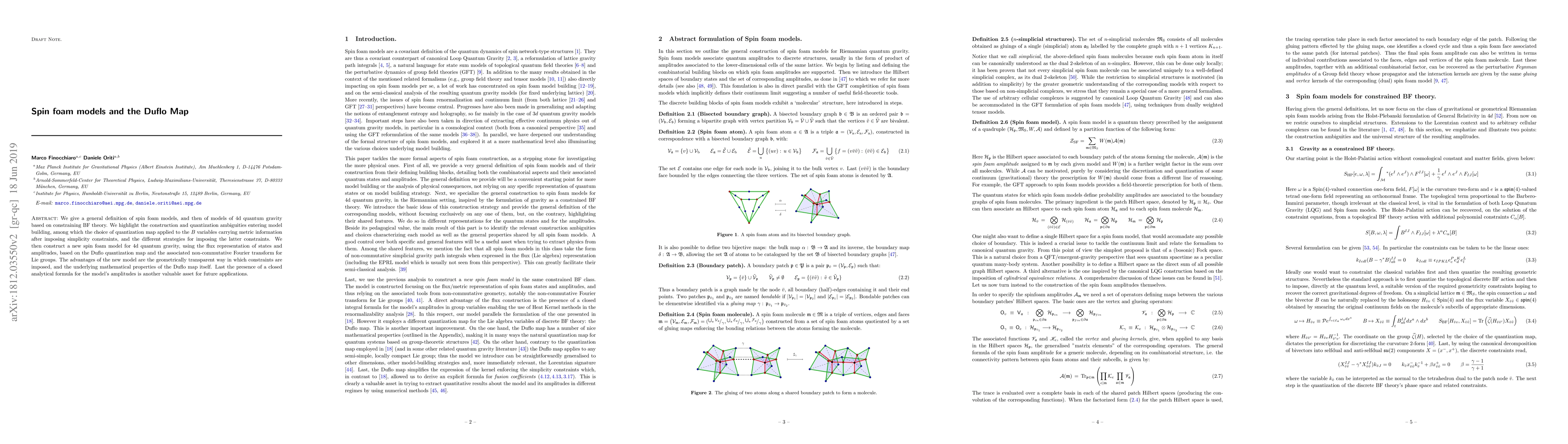 We give a general definition of spin foam models, and then of models of 4d quantum gravity based on constraining BF theory. We highlight the construction and quantization ambiguities entering model building, among which the choice of quantization map applied to the B variables carrying metric information after imposing simplicity constraints, and the different strategies for imposing the latter constraints. We then construct a new spin foam model for 4d quantum gravity, using the flux representation of states and amplitudes, based on the Duflo quantization map and the associated non-commutative Fourier transform for Lie groups. The advantages of the new model are the geometrically transparent way in which constraints are imposed, and the underlying mathematical properties of the Duflo map itself. Last the presence of a closed analytical formula for the model's amplitudes is another valuable asset for future applications.