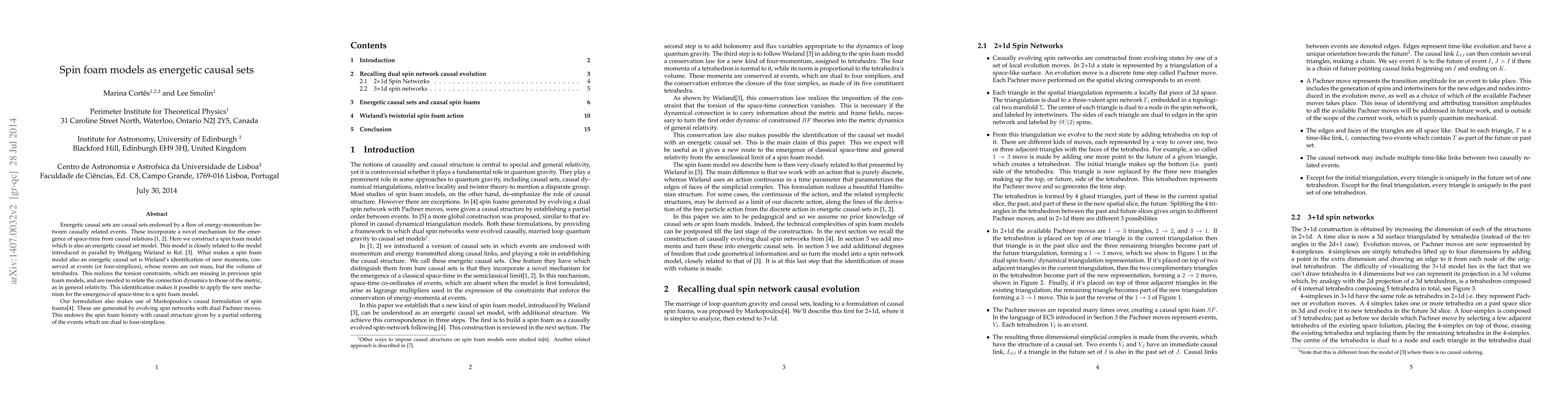 This paper constructs a spin foam model that functions as an energetic causal set, incorporating energy-momentum flow between causally related events. It utilizes Wieland's identification of new momenta, tied to the volume of tetrahedra, to realize torsion constraints and relate connection dynamics to metric dynamics, thus enabling the emergence of space-time from causal relations.