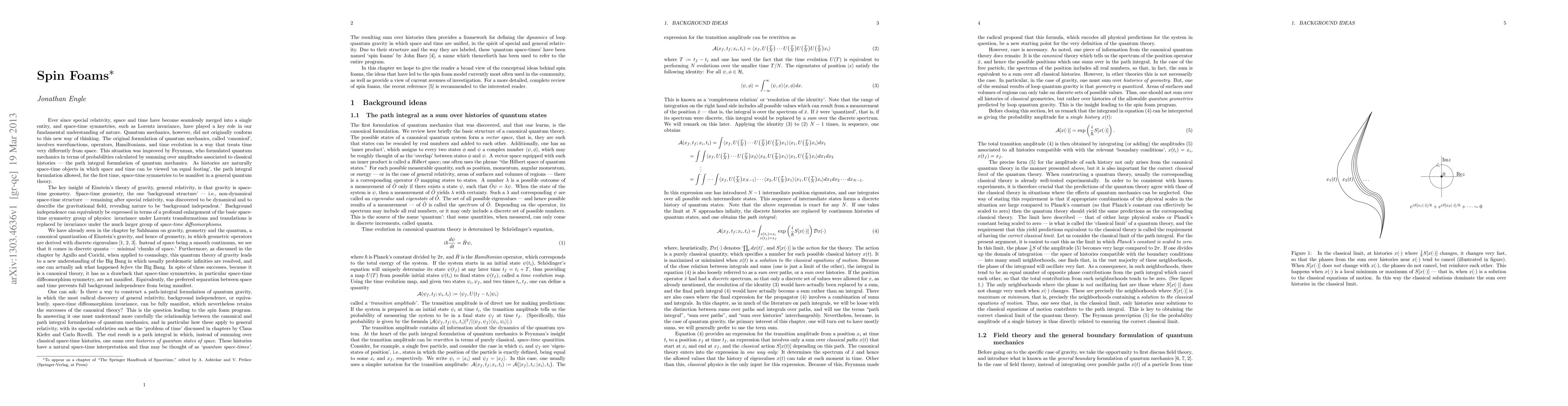 Spin foams offer a covariant approach to the dynamics of loop quantum gravity through a spacetime path integral over quantum states, serving as a foundational introduction for graduate students and interested general readers.
