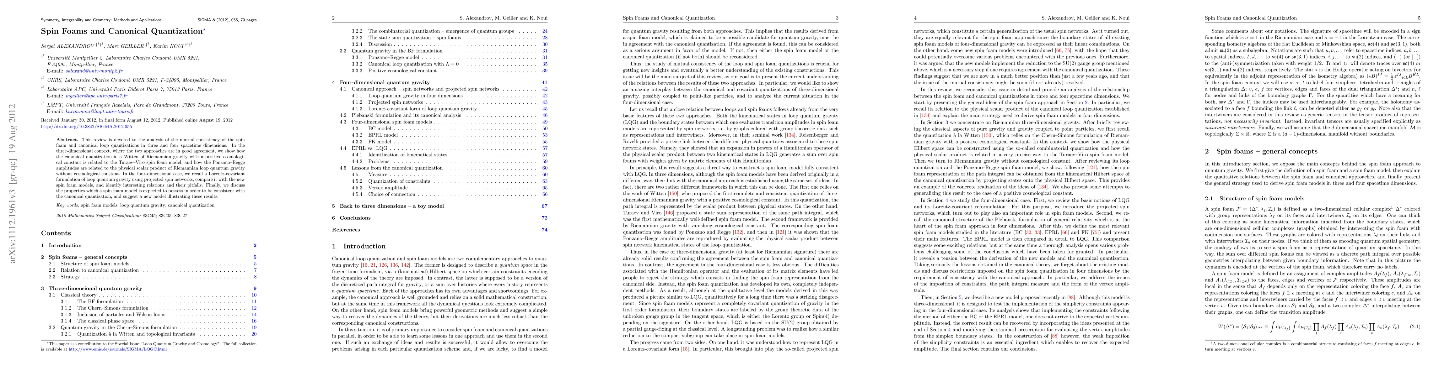 This paper reviews the consistency between spin foam and canonical loop quantization in three and four dimensions, showing their agreement in three dimensions and comparing formulations in four dimensions, while proposing a new spin foam model consistent with canonical quantization.