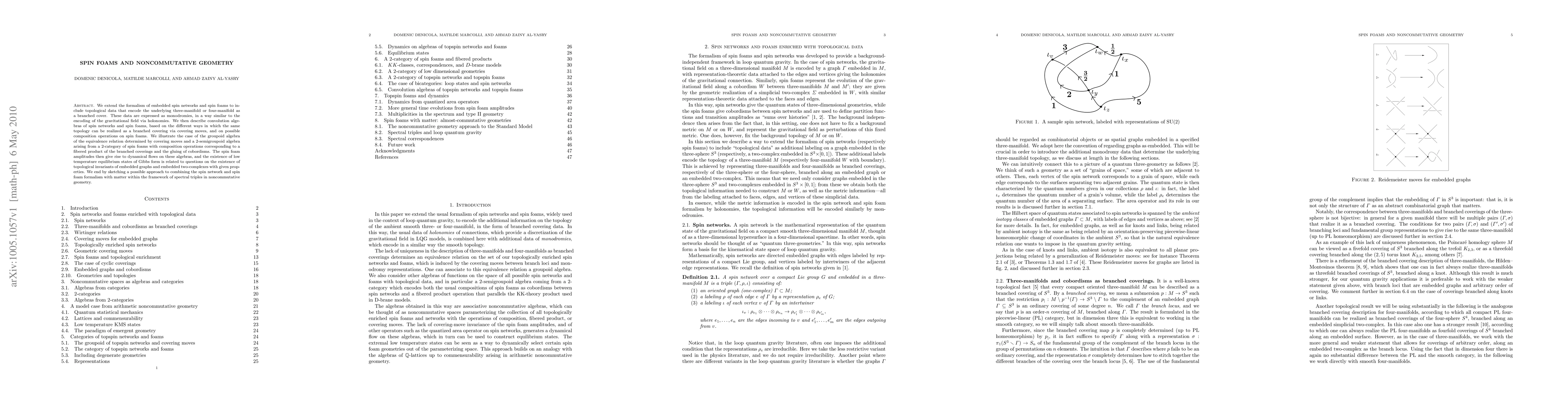 This paper extends spin foam and spin network formalisms to include topological data through monodromies, describing convolution algebras and their composition operations. It also explores spin foam amplitudes' dynamical flows and connections to Gibbs states, ultimately hinting at integrating these with matter in noncommutative geometry via spectral triples.