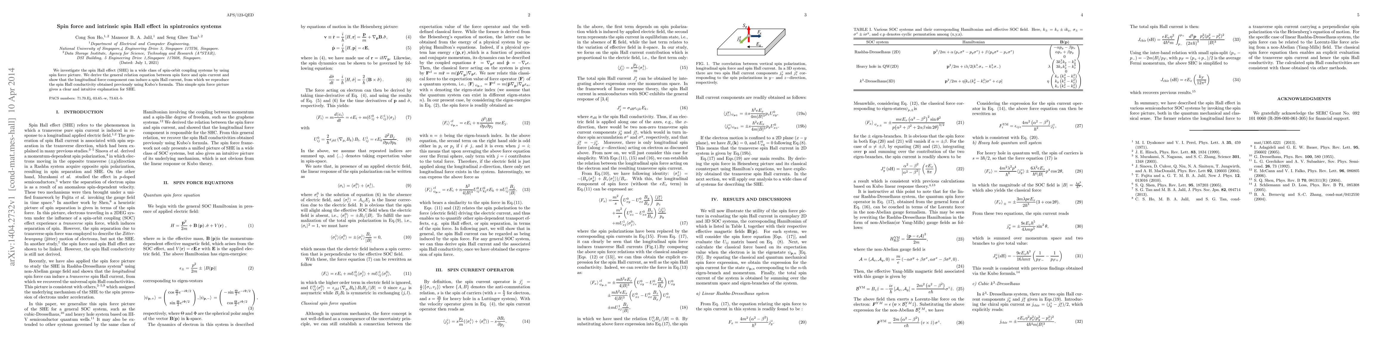 This paper explores the spin Hall effect (SHE) in spin-orbit coupled systems through a spin force perspective, deriving a general relation between spin force and spin current, and demonstrating that the longitudinal force component can generate a spin Hall current, providing a clear intuitive explanation for SHE.