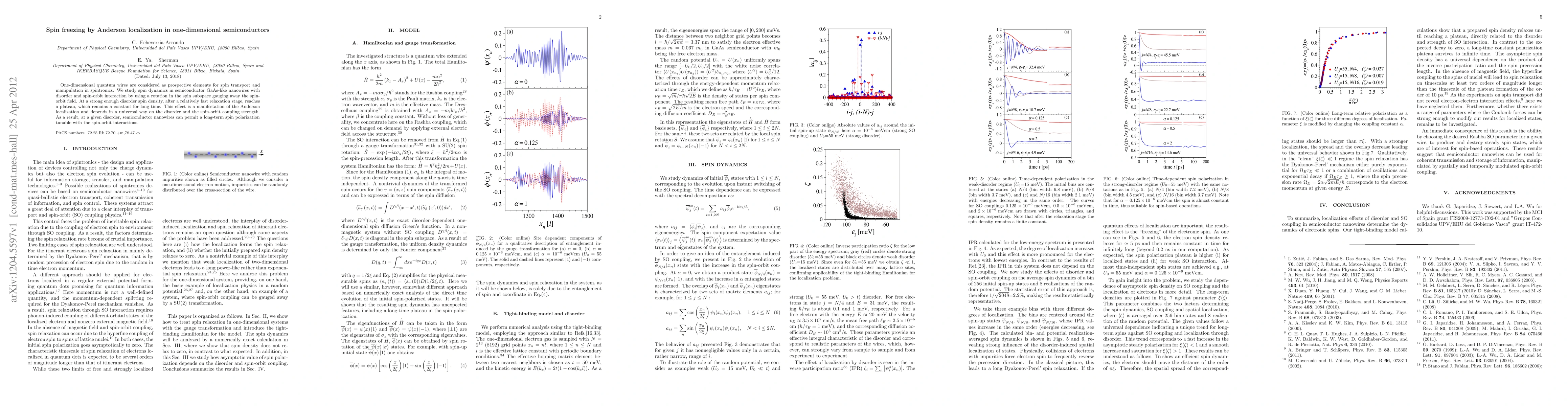 This paper investigates spin dynamics in GaAs-like nanowires, demonstrating that strong disorder induces spin freezing via Anderson localization, leading to a plateau in spin density and tunable long-term spin polarization through spin-orbit interactions.