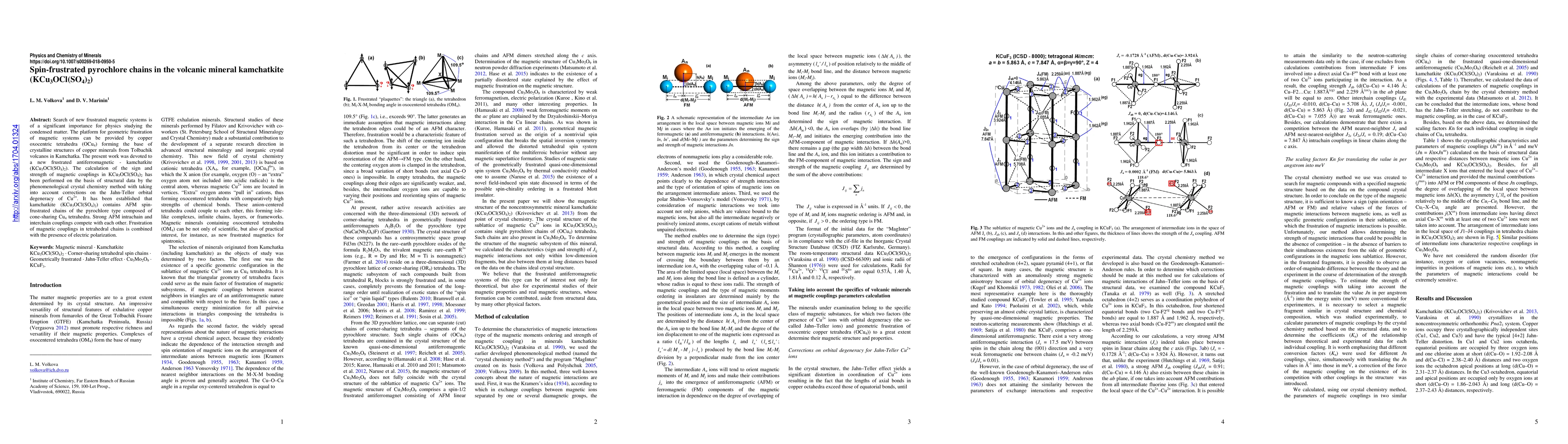 Researchers discovered a new spin-frustrated magnetic material called kamchatkite, featuring copper oxocentric tetrahedra with competing strong intrachain and interchain couplings.