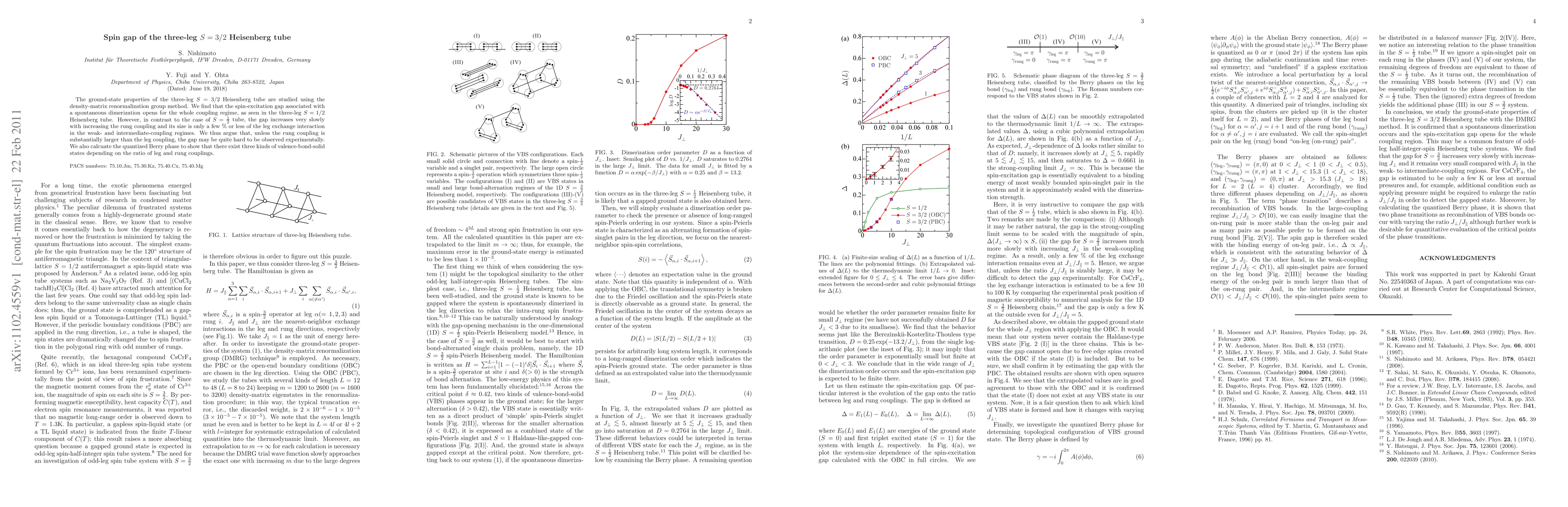 The ground-state properties of the three-leg S=3/2 Heisenberg tube are studied using the density-matrix renormalization group method. We find that the spin-excitation gap associated with a spontaneous dimerization opens for the whole coupling regime, as seen in the three-leg S=1/2 Heisenberg tube. However, in contrast to the case of S=1/2 tube, the gap increases very slowly with increasing the rung coupling and its size is only a few % or less of the leg exchange interaction in the weak- and intermediate-coupling regimes. We thus argue that, unless the rung coupling is substantially larger than the leg coupling, the gap may be quite hard to be observed experimentally. We also calcuate the quantized Berry phase to show that there exist three kinds of valence-bond-solid states depending on the ratio of leg and rung couplings.