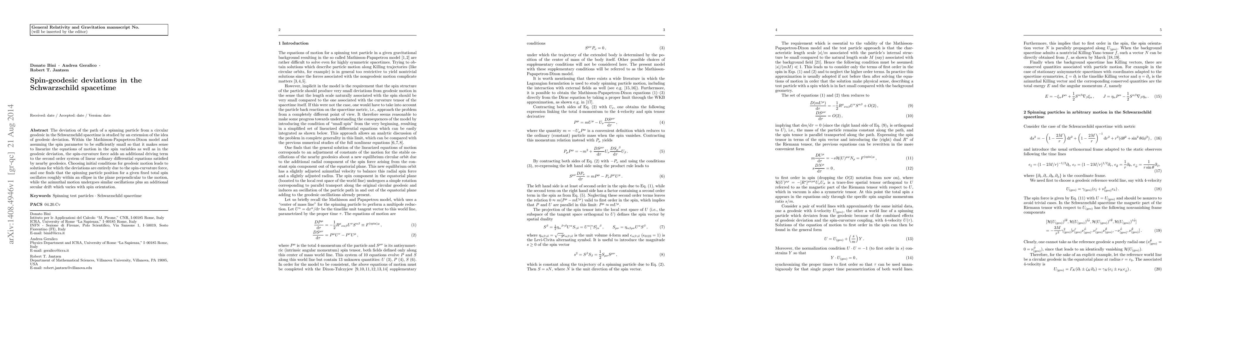 This paper investigates how a spinning particle's path deviates from a circular geodesic in Schwarzschild spacetime, revealing that the spin-curvature force induces oscillations in the particle's position and a secular drift in its azimuthal motion, dependent on the spin orientation.