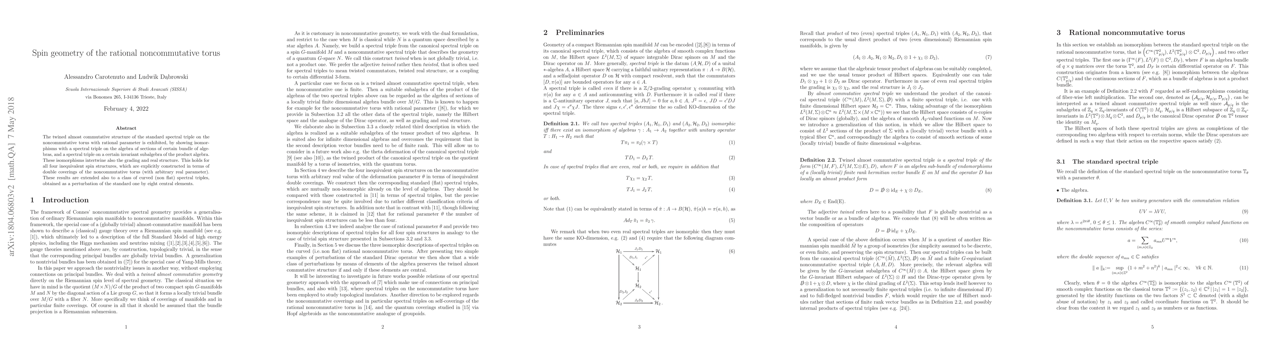 The twined almost commutative structure of the standard spectral triple on the noncommutative torus with rational parameter is exhibited, by showing isomorphisms with a spectral triple on the algebra of sections of certain bundle of algebras, and a spectral triple on a certain invariant subalgebra of the product algebra. These isomorphisms intertwine also the grading and real structure. This holds for all four inequivalent spin structures, which are explicitly constructed in terms of double coverings of the noncommutative torus (with arbitrary real parameter). These results are extended also to a class of curved (non flat) spectral triples, obtained as a perturbation of the standard one by eight central elements.