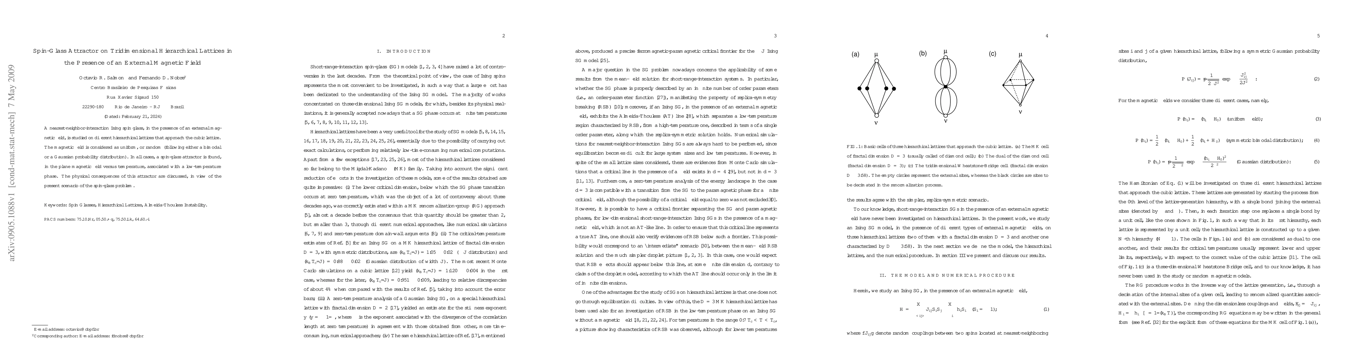 This research investigates spin-glass behavior in hierarchical tridimensional lattices under uniform or random external magnetic fields. A spin-glass attractor emerges in the magnetic field-temperature plane, associated with a low-temperature phase, with implications discussed in the context of contemporary spin-glass theory.