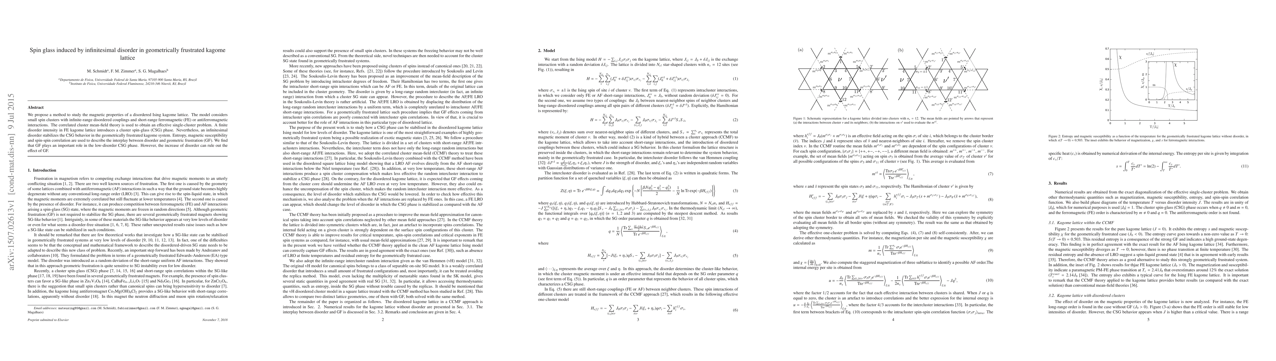 This paper investigates the magnetic properties of a disordered Ising kagome lattice, showing that infinitesimal disorder induces a spin-glass phase due to geometric frustration. It uses correlated cluster mean-field theory to demonstrate that while finite disorder introduces a cluster spin-glass phase, geometric frustration stabilizes this effect at low disorder levels.