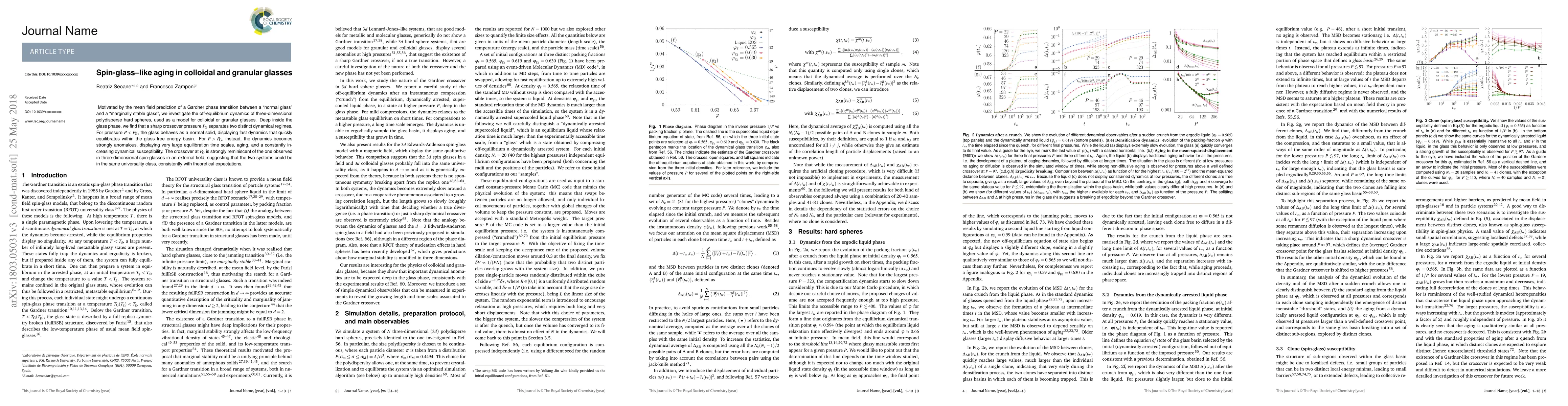 This research investigates the off-equilibrium dynamics of colloidal and granular glasses, finding a sharp crossover pressure that separates normal solid behavior from anomalous dynamics characterized by aging and long equilibration times, akin to spin-glass behavior. The observed crossover suggests these systems may belong to the same universality class.