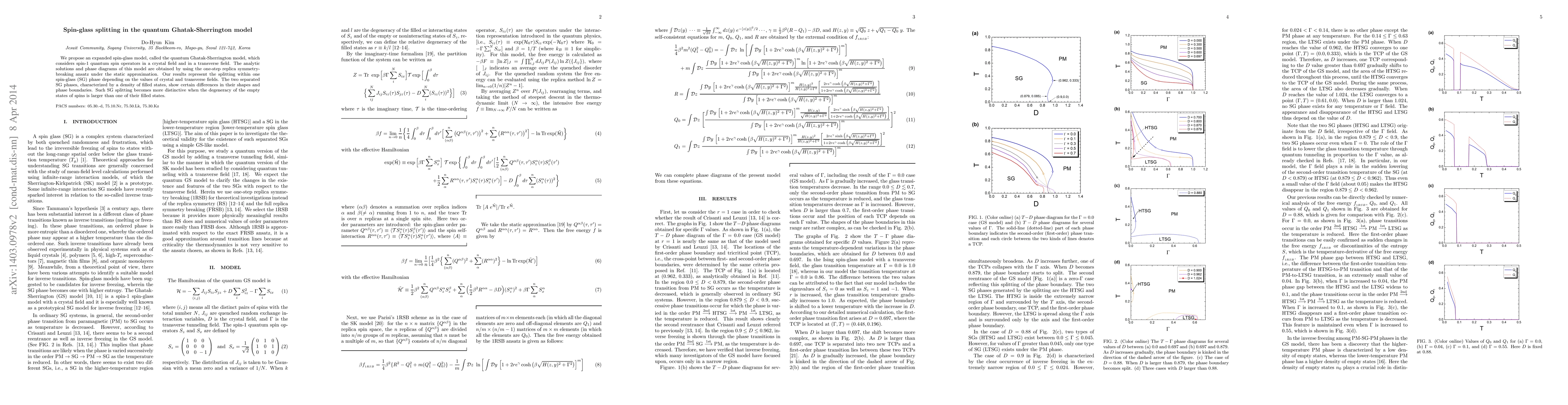 Researchers introduced a quantum spin-glass model that splits into two distinct phases depending on crystal and transverse fields, with distinct density of filled states characteristics.