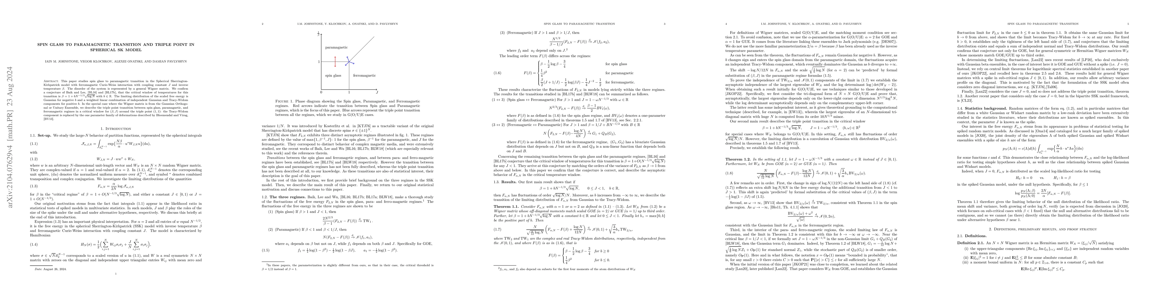 This paper investigates the spin glass to paramagnetic transition in the Spherical Sherrington-Kirkpatrick model with ferromagnetic interaction, confirming a conjecture about the critical temperature window. It derives a Gaussian limiting distribution for $b \leq 0$ and describes the transition to a Tracy-Widom distribution as $b$ increases.