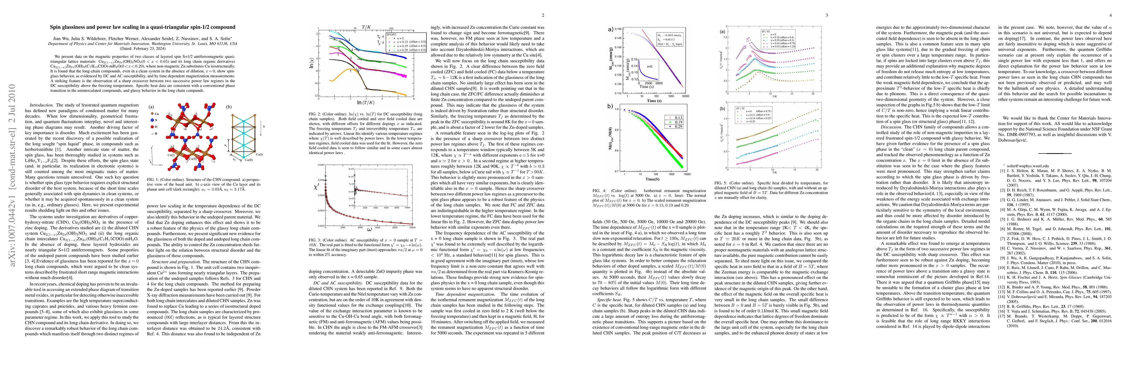 We present data on the magnetic properties of two classes of layered spin S=1/2 antiferromagnetic quasi-triangular lattice materials: $Cu_{2(1-x)}Zn_{2x}(OH)_3NO_3$ ($0 < x < 0.65$) and its long chain organic derivatives $Cu_{2(1-x)}Zn_{2x}(OH)_3(C_7H_{15}COO)\cdot mH_2O$ ($0 < x < 0.29$), where non-magnetic Zn substitutes Cu isostructurally. It is found that the long-chain compounds, even in a clean system in the absence of dilution, $x\!=\!0$, show spin-glass behavior, as evidenced by DC and AC susceptibility, and by time dependent magnetization measurements. A striking feature is the observation of a sharp crossover between two successive power law regimes in the DC susceptibility above the freezing temperature. Specific heat data are consistent with a conventional phase transition in the unintercalated compounds, and glassy behavior in the long chain compunds.