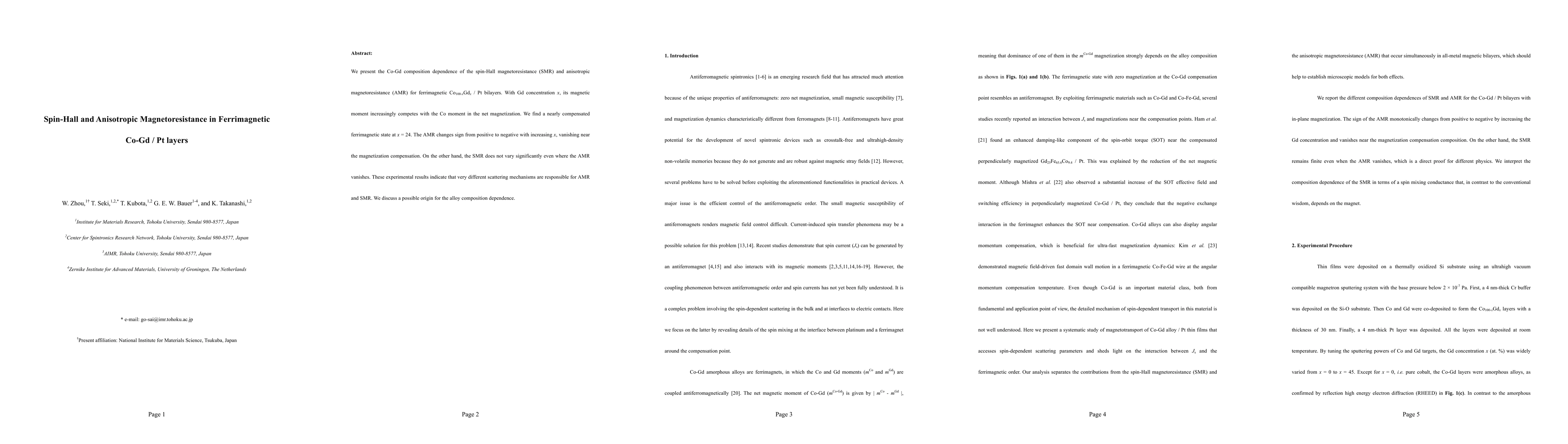 We present the Co-Gd composition dependence of the spin-Hall magnetoresistance (SMR) and anisotropic magnetoresistance (AMR) for ferrimagnetic Co100-xGdx / Pt bilayers. With Gd concentration x, its magnetic moment increasingly competes with the Co moment in the net magnetization. We find a nearly compensated ferrimagnetic state at x = 24. The AMR changes sign from positive to negative with increasing x, vanishing near the magnetization compensation. On the other hand, the SMR does not vary significantly even where the AMR vanishes. These experimental results indicate that very different scattering mechanisms are responsible for AMR and SMR. We discuss a possible origin for the alloy composition dependence.