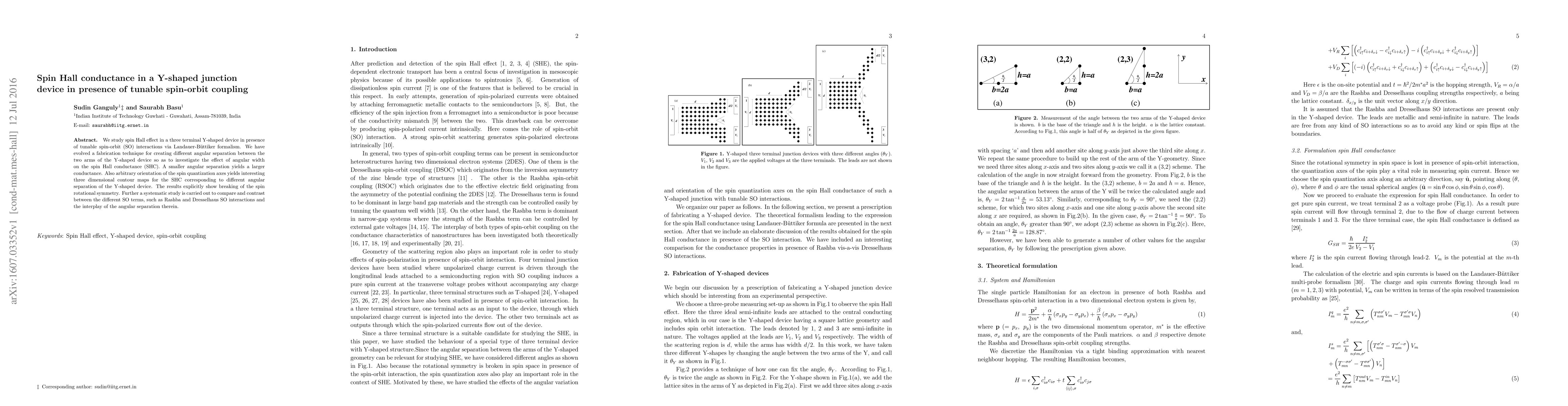 This paper investigates the spin Hall effect in a Y-shaped junction using tunable spin-orbit coupling, revealing that a smaller angular separation between the arms enhances spin Hall conductance. The study also highlights the breaking of spin rotational symmetry and the comparative effects of different spin-orbit interactions, such as Rashba and Dresselhaus.