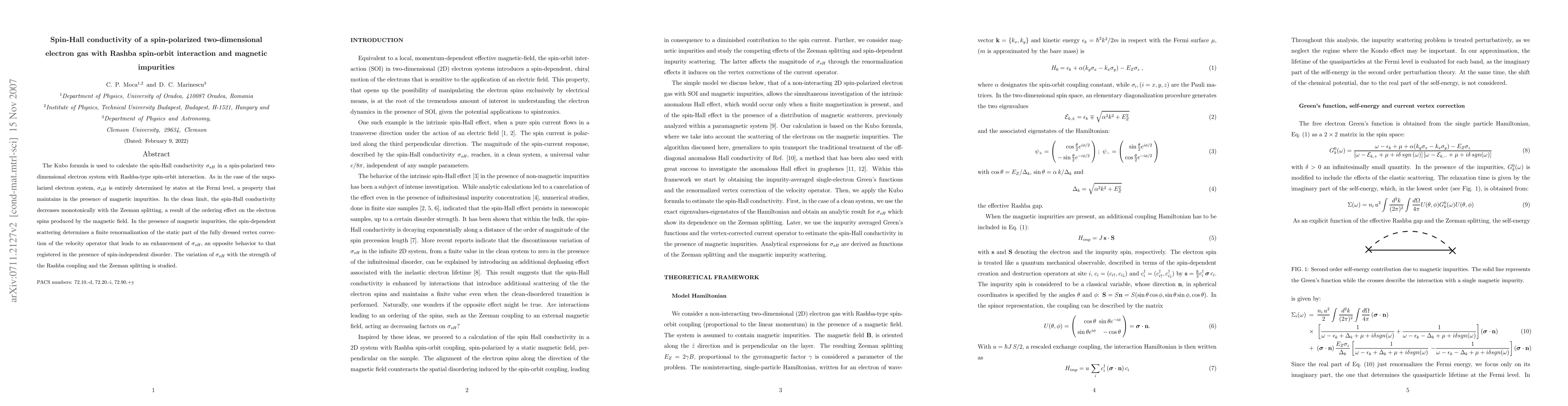 This paper calculates spin-Hall conductivity in a spin-polarized 2D electron gas with Rashba spin-orbit interaction using the Kubo formula, showing that it is governed by states at the Fermi level. The presence of magnetic impurities enhances spin-Hall conductivity due to spin-dependent scattering, contrasting with the effect of spin-independent disorder.