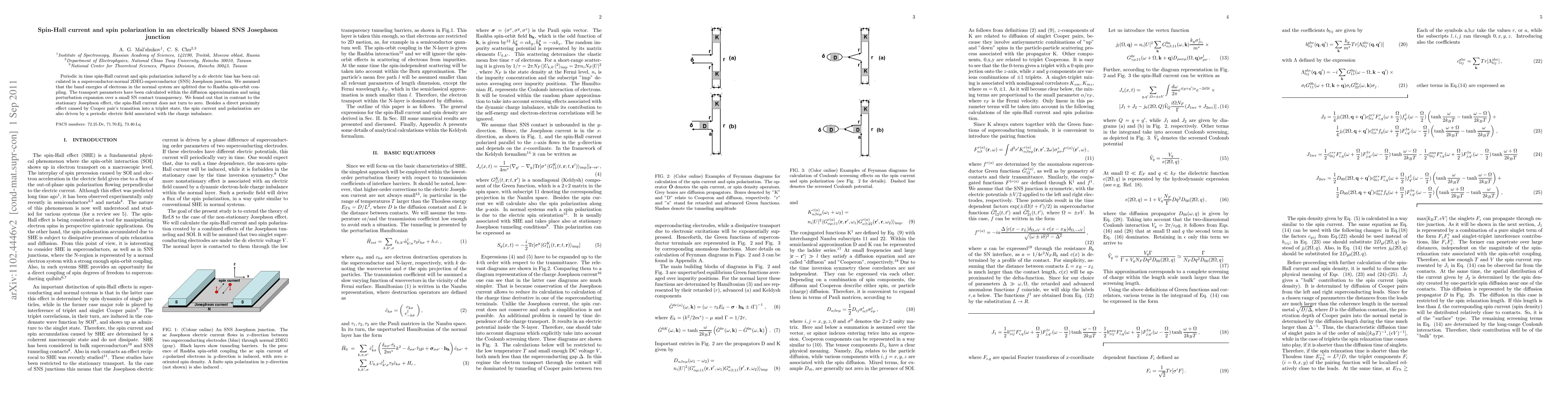 This paper investigates spin-Hall current and spin polarization in an SNS Josephson junction under a dc electric bias. It finds that the spin-Hall current persists due to both a direct proximity effect and a periodic electric field from charge imbalance, contrasting with the stationary Josephson effect.