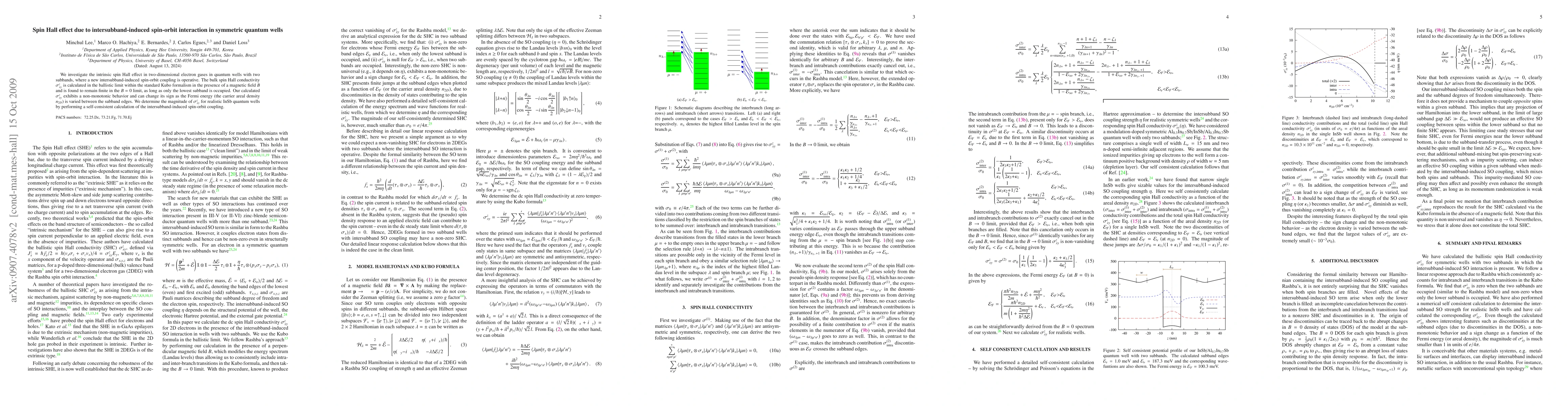 The research investigates the intrinsic spin Hall effect in symmetric quantum wells with two subbands, revealing a finite bulk spin Hall conductivity in the absence of an external magnetic field. The calculated spin Hall conductivity shows nonmonotonic behavior and can change sign with variations in carrier density between subband edges.