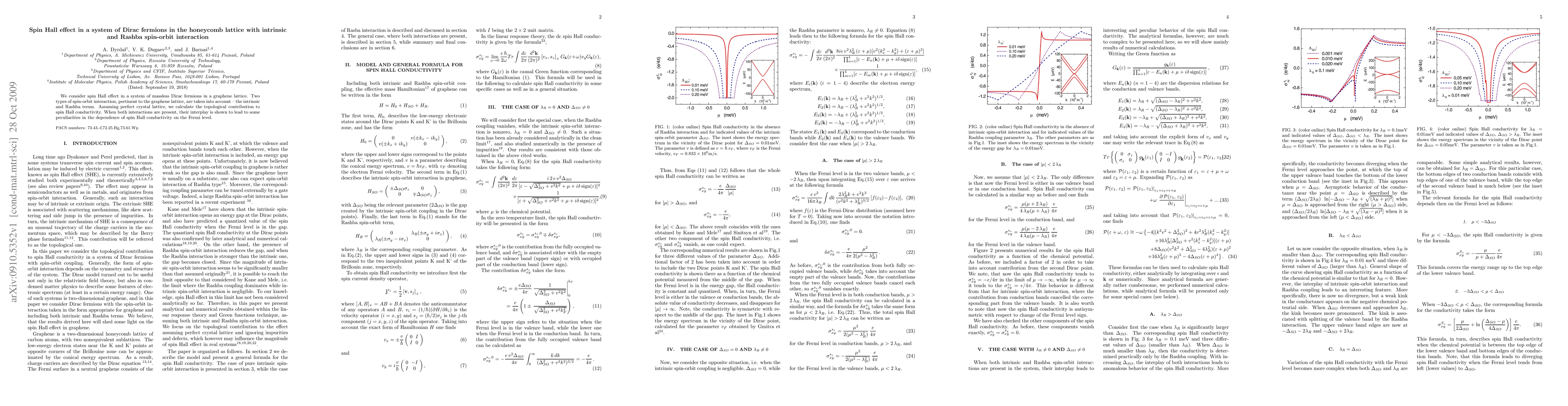 Summary: This paper investigates the spin Hall effect in graphene's Dirac fermions under intrinsic and Rashba spin-orbit interactions, revealing unique dependencies of spin Hall conductivity on the Fermi level due to their interplay. The topological contribution to spin Hall conductivity is calculated assuming a perfect crystal lattice.