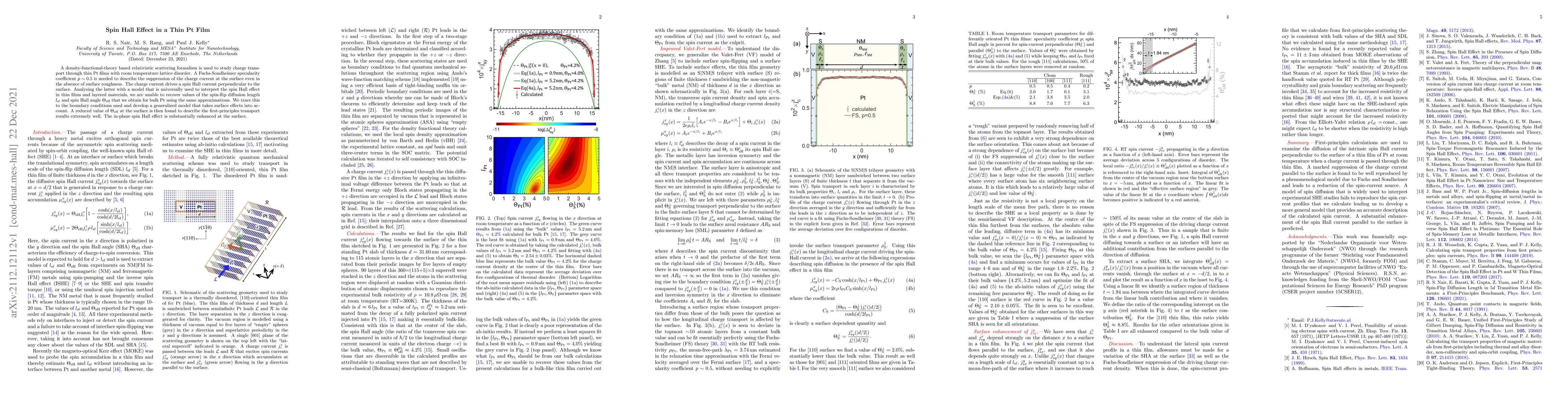 A density-functional-theory based relativistic scattering formalism is used to study charge transport through thin Pt films with room temperature lattice disorder. A Fuchs-Sondheimer specularity coefficient $p \sim 0.5$ is needed to describe the suppression of the charge current at the surface even in the absence of surface roughness. The charge current drives a spin Hall current perpendicular to the surface. Analysing the latter with a model that is universally used to interpret the spin Hall effect in thin films and layered materials, we are unable to recover values of the spin-flip diffusion length $l_{\rm sf}$ and spin Hall angle $\Theta_{\rm sH}$ that we obtain for bulk Pt using the same approximations. We trace this to the boundary conditions used and develop a generalized model that takes surface effects into account. A reduced value of $\Theta_{\rm sH}$ at the surface is then found to describe the first-principles transport results extremely well. The in-plane spin Hall effect is substantially enhanced at the surface.