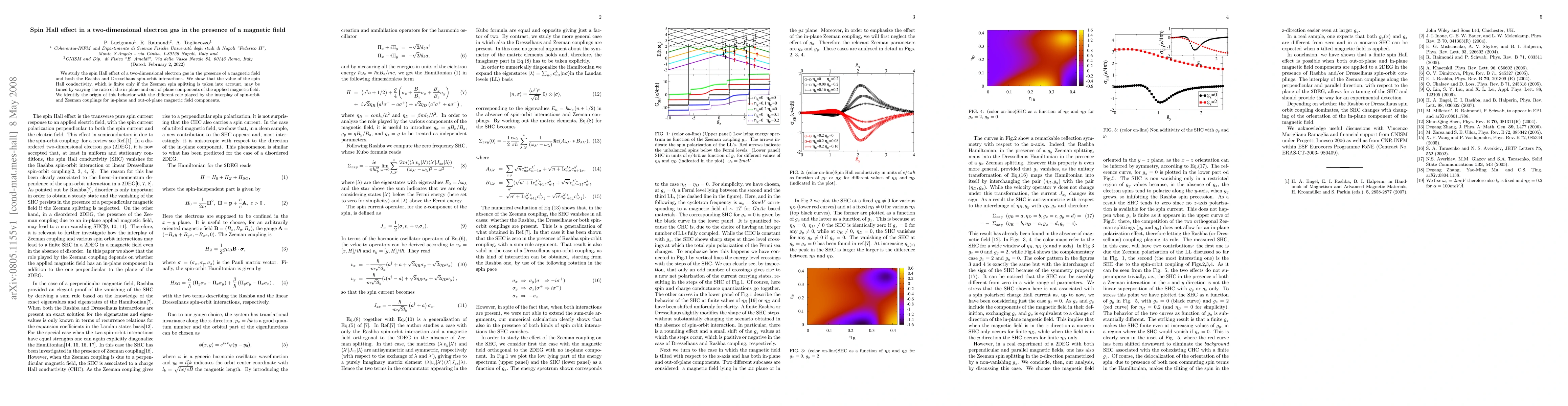 This paper investigates the spin Hall effect in a two-dimensional electron gas under a magnetic field, revealing that spin Hall conductivity can be modulated by adjusting the ratio of in-plane to out-of-plane magnetic field components, due to the distinct influence of spin-orbit and Zeeman couplings.