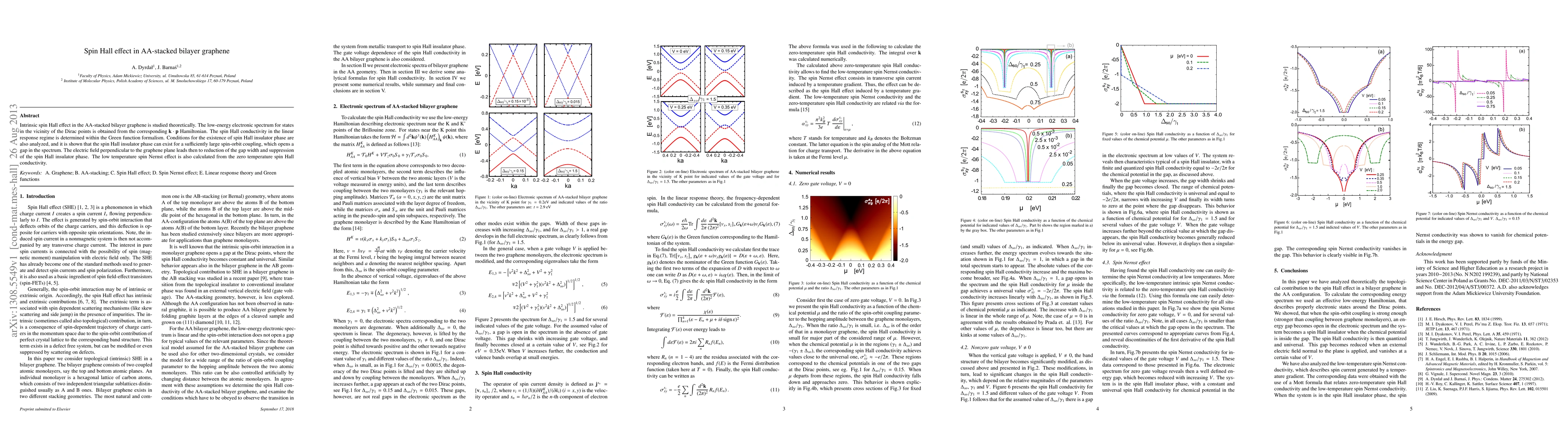 This paper theoretically investigates the intrinsic spin Hall effect in AA-stacked bilayer graphene, showing that a spin Hall insulator phase can exist under large spin-orbit coupling, which opens a gap in the electronic spectrum. The perpendicular electric field reduces the gap and suppresses this phase, and the low-temperature spin Nernst effect is also calculated.