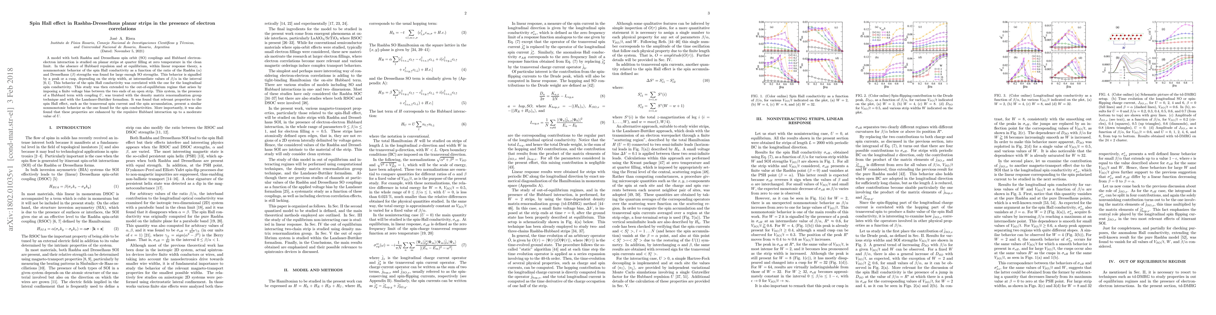 This paper investigates the spin Hall effect in planar strips with both Rashba and Dresselhaus spin-orbit couplings and Hubbard electron correlations. It reveals a nonmonotonic behavior of spin Hall conductivity, with peaks or cusps at intermediate ratios of Rashba to Dresselhaus strengths, and shows that repulsive Hubbard interactions enhance spin-related properties up to a moderate coupling strength.