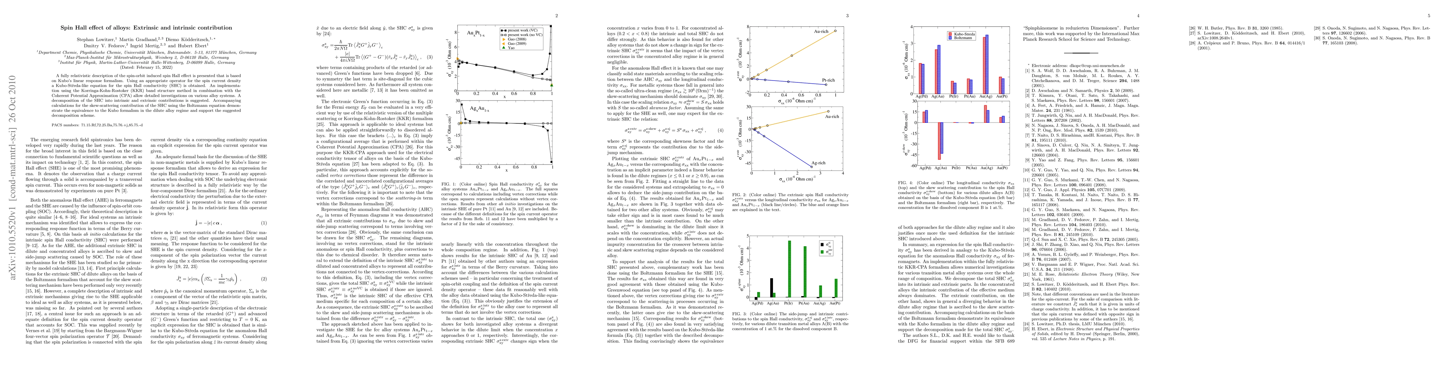 A fully relativistic description of the spin-orbit induced spin Hall effect is presented that is based on Kubo's linear response formalism. Using an appropriate operator for the spin current density a Kubo-St\v{r}eda-like equation for the spin Hall conductivity (SHC) is obtained. An implementation using the Korringa-Kohn-Rostoker (KKR) band structure method in combination with the Coherent Potential Approximation (CPA) allow detailed investigations on various alloy systems. A decomposition of the SHC into intrinsic and extrinsic contributions is suggested. Accompanying calculations for the skew-scattering contribution of the SHC using the Boltzmann equation demonstrate the equivalence to the Kubo formalism in the dilute alloy regime and support the suggested decomposition scheme.