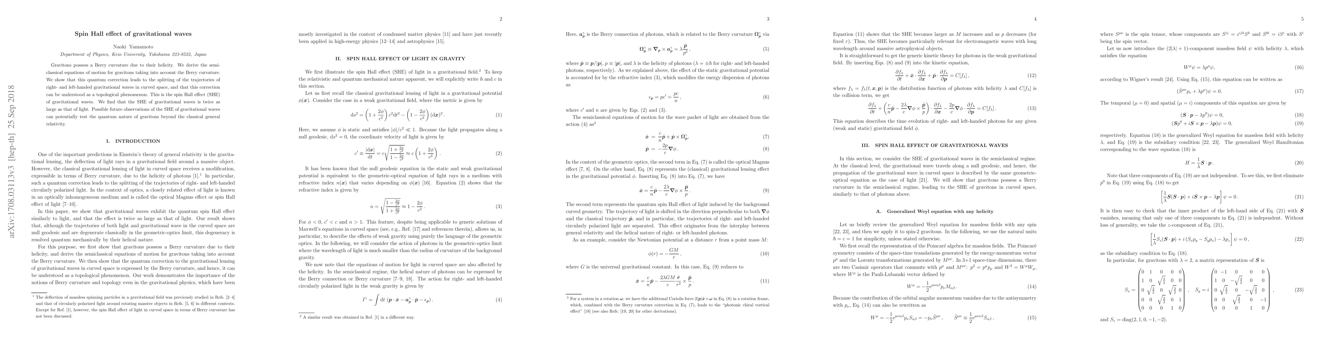 This paper explores the spin Hall effect (SHE) of gravitational waves, demonstrating that quantum corrections due to gravitons' helicity lead to the splitting of right- and left-handed gravitational wave trajectories in curved space. The effect is twice as large as that of light and could provide a test of the quantum nature of gravitons.