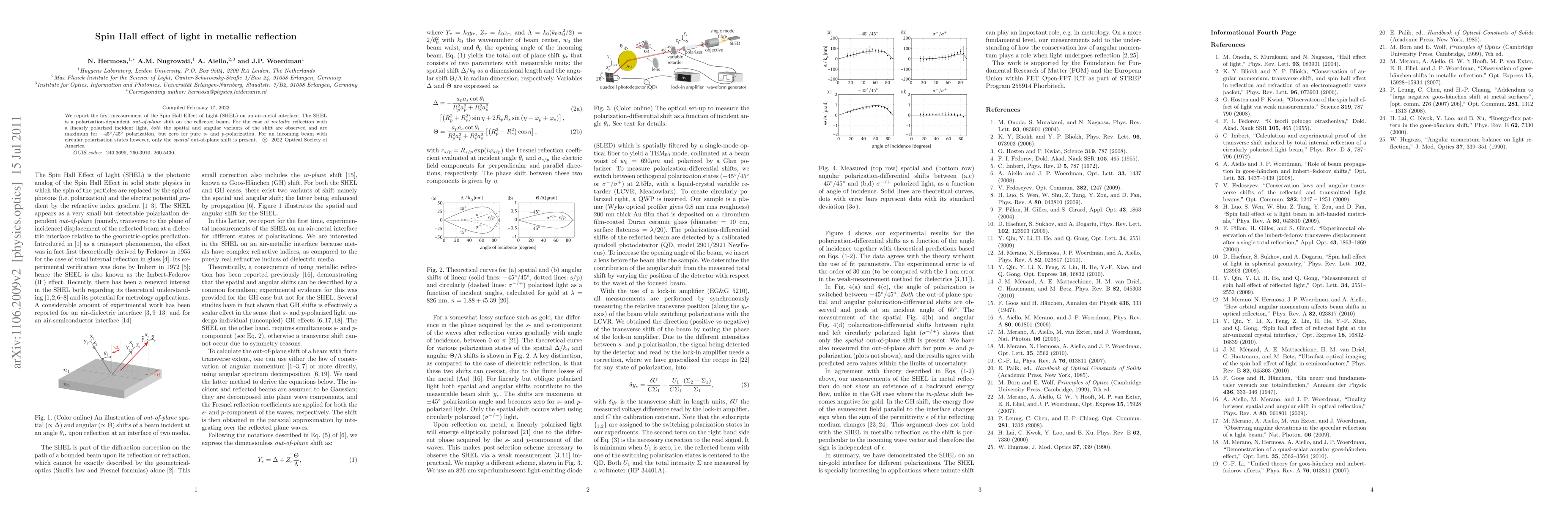 We report the first measurement of the Spin Hall Effect of Light (SHEL) on an air-metal interface. The SHEL is a polarization-dependent out-of-plane shift on the reflected beam. For the case of metallic reflection with a linearly polarized incident light, both the spatial and angular variants of the shift are observed and are maximum for -45/45 deg polarization, but zero for pure s- and p-polarization. For an incoming beam with circular polarization states however, only the spatial out-of-plane shift is present.