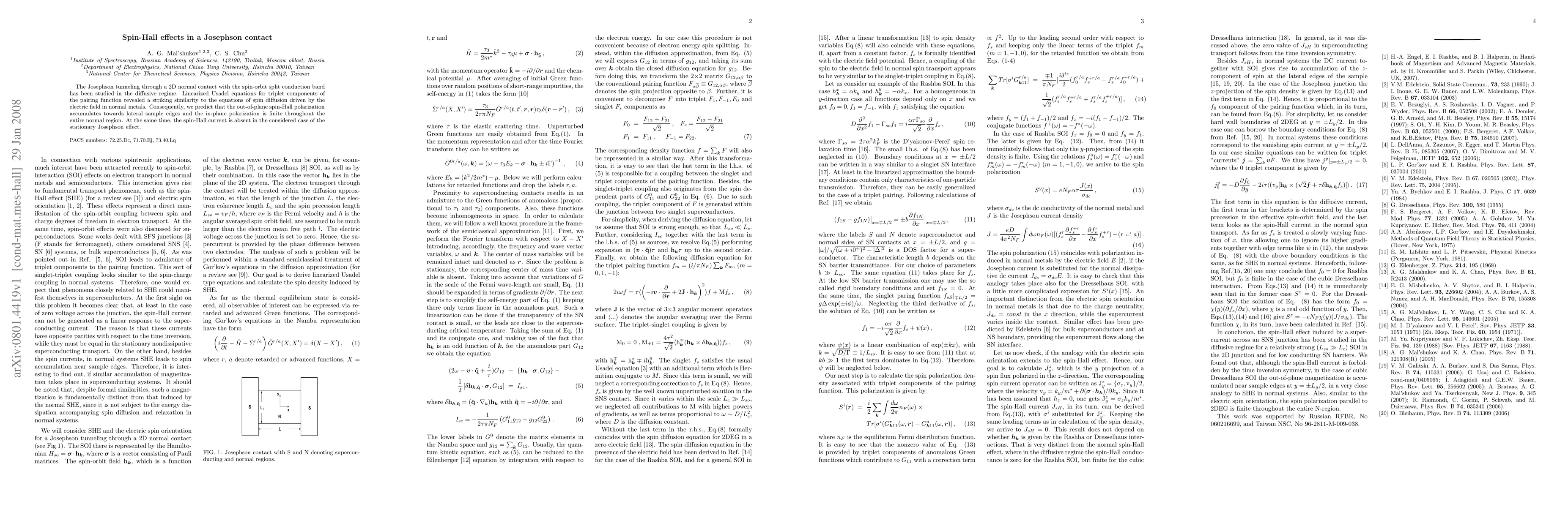 The study investigates spin-Hall effects in a Josephson contact with spin-orbit split conduction bands, revealing similarities to spin diffusion in normal metals. The research predicts out-of-plane spin-Hall polarization at sample edges and in-plane polarization across the normal region, while noting the absence of spin-Hall current in stationary Josephson effects.