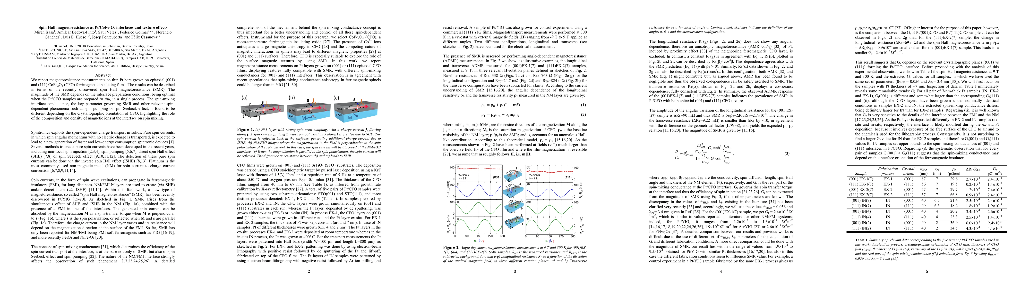 This paper investigates spin Hall magnetoresistance (SMR) in Pt/CoFe2O4 (CFO) interfaces, finding that optimal SMR occurs with in situ preparation. The study reveals that the spin-mixing interface conductance varies with CFO crystallographic orientation, emphasizing the influence of magnetic ion composition and density on spin-dependent phenomena.
