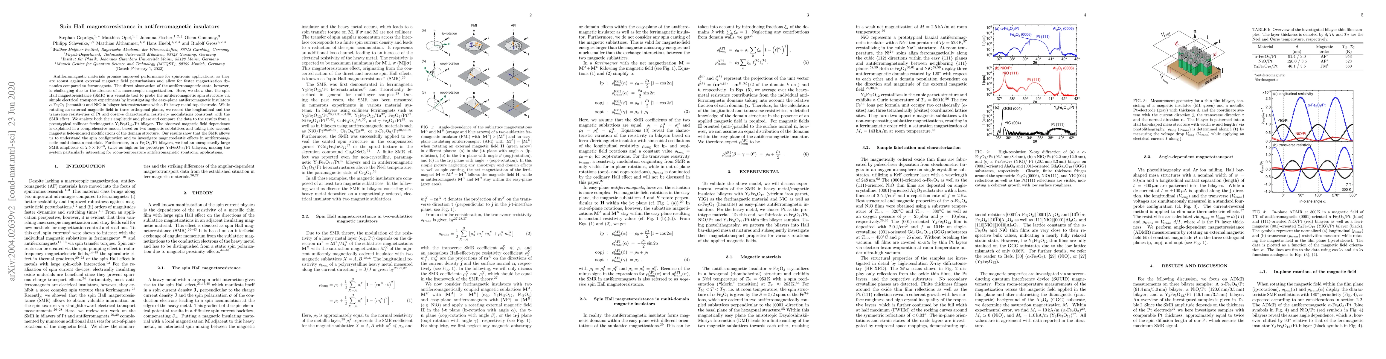 Antiferromagnetic materials promise improved performance for spintronic applications, as they are robust against external magnetic field perturbations and allow for faster magnetization dynamics compared to ferromagnets. The direct observation of the antiferromagnetic state, however, is challenging due to the absence of a macroscopic magnetization. Here, we show that the spin Hall magnetoresistance (SMR) is a versatile tool to probe the antiferromagnetic spin structure via simple electrical transport experiments by investigating the easy-plane antiferromagnetic insulators $\alpha$-Fe2O3 (hematite) and NiO in bilayer heterostructures with a Pt heavy metal top electrode. While rotating an external magnetic field in three orthogonal planes, we record the longitudinal and the transverse resistivities of Pt and observe characteristic resistivity modulations consistent with the SMR effect. We analyze both their amplitude and phase and compare the data to the results from a prototypical collinear ferrimagnetic Y3Fe5O12/Pt bilayer. The observed magnetic field dependence is explained in a comprehensive model, based on two magnetic sublattices and taking into account magnetic field-induced modifications of the domain structure. Our results show that the SMR allows us to understand the spin configuration and to investigate magnetoelastic effects in antiferromagnetic multi-domain materials. Furthermore, in $\alpha$-Fe2O3/Pt bilayers, we find an unexpectedly large SMR amplitude of $2.5 \times 10^{-3}$, twice as high as for prototype Y3Fe5O12/Pt bilayers, making the system particularly interesting for room-temperature antiferromagnetic spintronic applications.