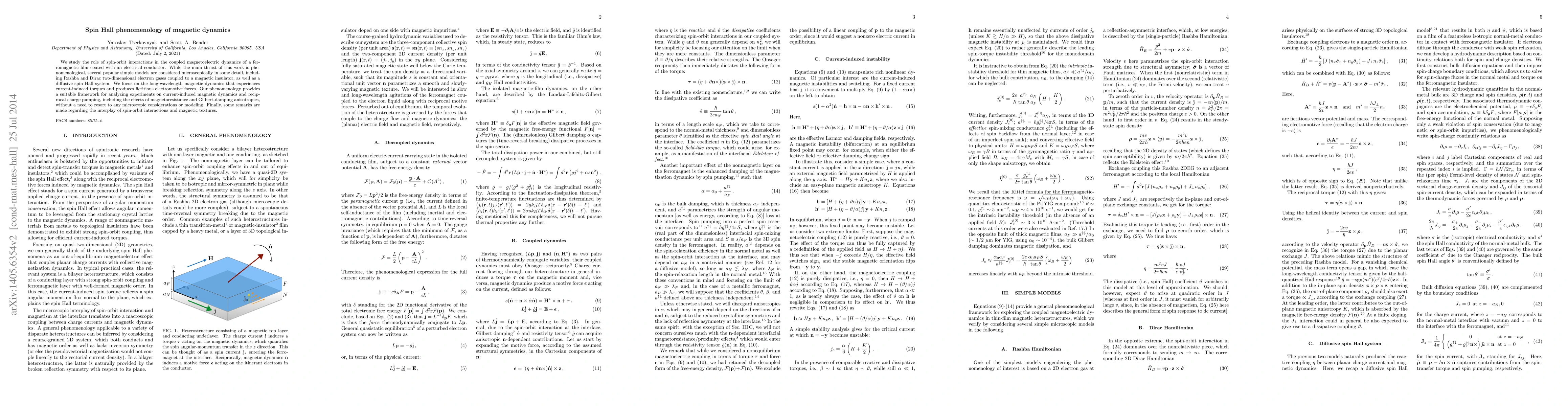 We study the role of spin-orbit interactions in the coupled magnetoelectric dynamics of a ferromagnetic film coated with an electrical conductor. While the main thrust of this work is phenomenological, several popular simple models are considered microscopically in some detail, including Rashba and Dirac two-dimensional electron gases coupled to a magnetic insulator, as well as a diffusive spin Hall system. We focus on the long-wavelength magnetic dynamics that experiences current-induced torques and produces fictitious electromotive forces. Our phenomenology provides a suitable framework for analyzing experiments on current-induced magnetic dynamics and reciprocal charge pumping, including the effects of magnetoresistance and Gilbert-damping anisotropies, without a need to resort to any microscopic considerations or modeling. Finally, some remarks are made regarding the interplay of spin-orbit interactions and magnetic textures.